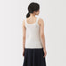 A lightweight casual knit tank top made in a ribbed structure, ensuring a clean, flattering fit that hugs the body. It is thick enough to wear on its own, or layered underneath a T-shirt or cardigan.