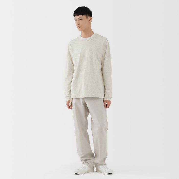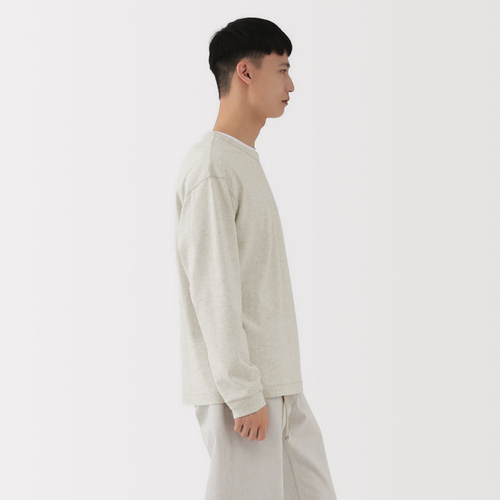 A long sleeve t-shirt made of a cotton material that has an extremely soft and airy texture. The relaxed silhouette is comfortable to wear when going out or lounging at home.