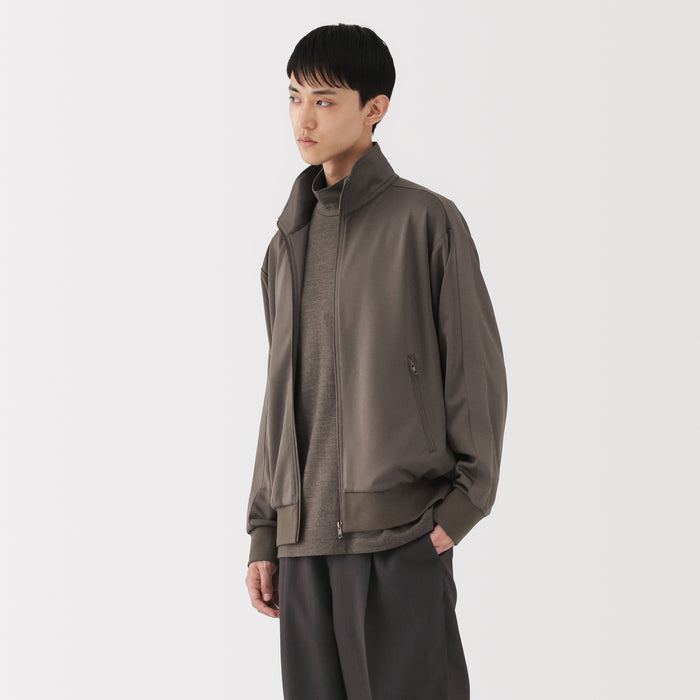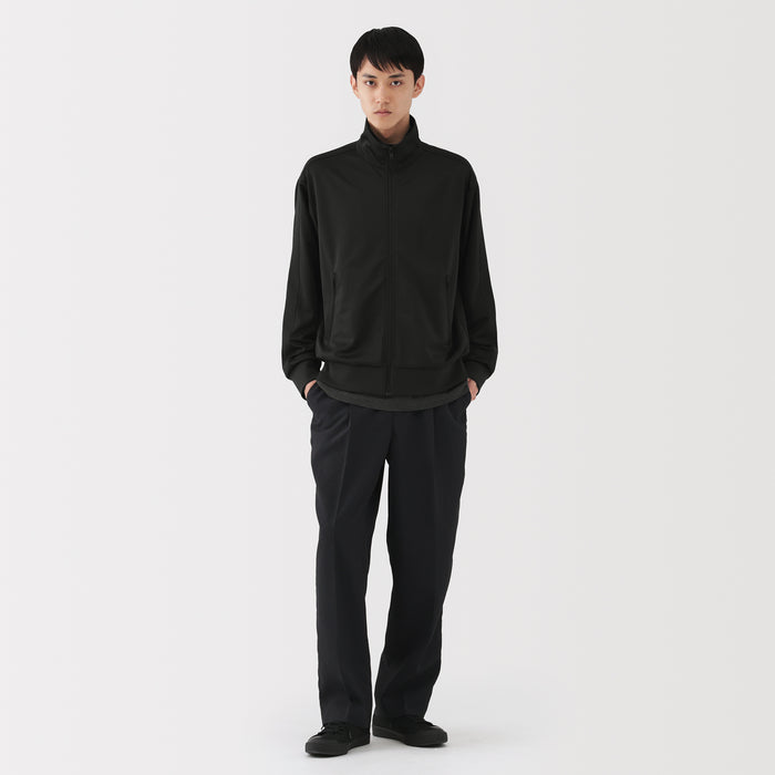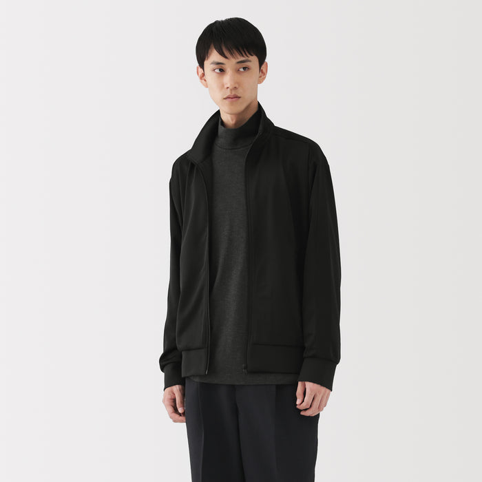 A men's track jacket made from smooth recycled polyester jersey fabric that is easy to move in, perfect for training and exercising. It has a sleek silhouette and secure zip-up pockets.