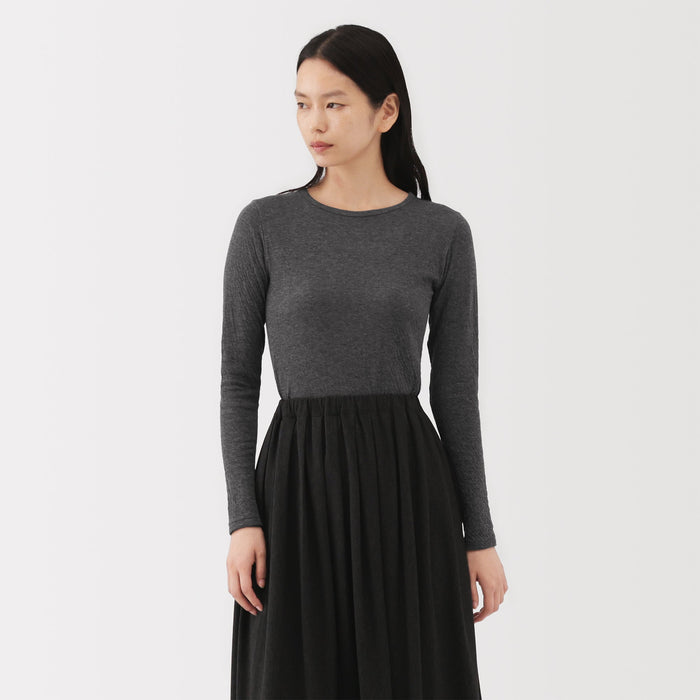A comfortable undershirt made of jersey material that combines the suppleness and durability of extra-long staple cotton with the smoothness of cashmere to create a soft and smooth texture. The cashmere blend allows for moderate elasticity and stretch, and it's just the right thickness for either wearing on its own or layered underneath a sweater or jacket.