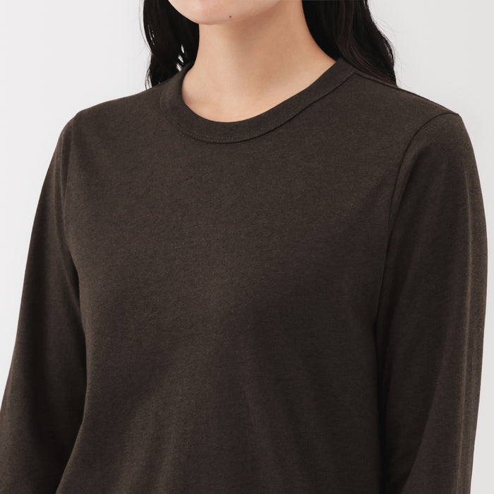 This long sleeve women's t-shirt is made from a cozy cotton and yak wool blend for a warm, soft texture.
