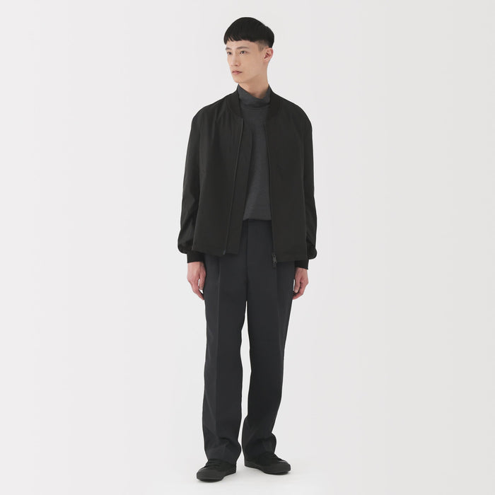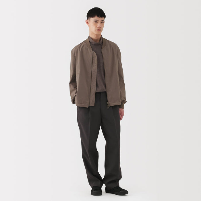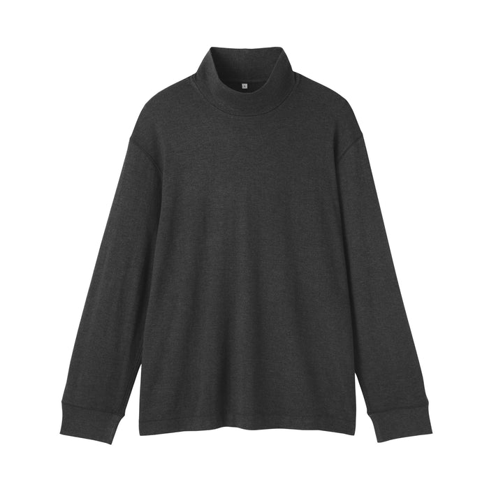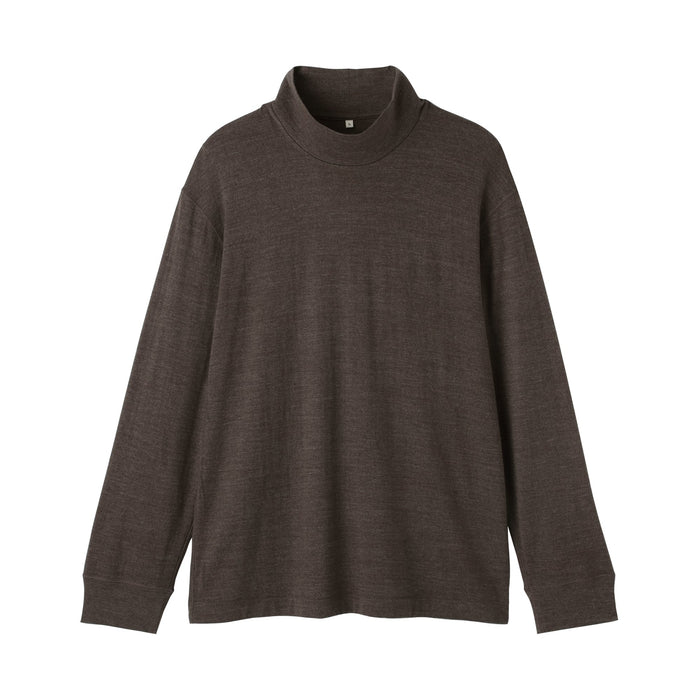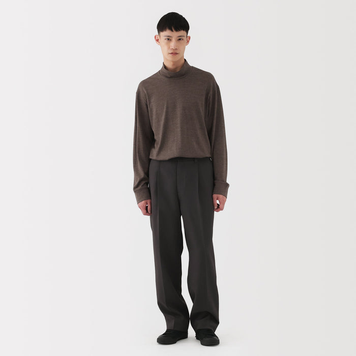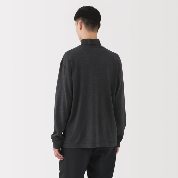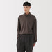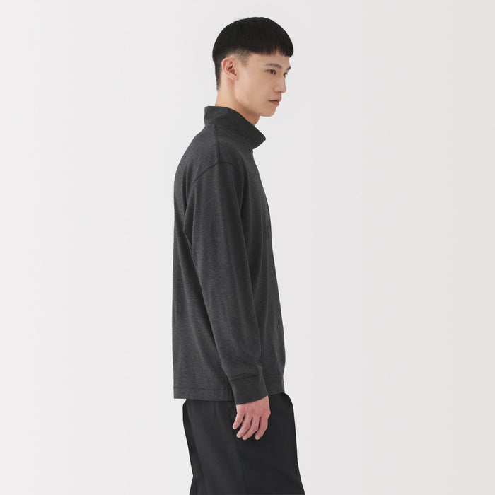 A men's jersey t-shirt featuring a high neck that is just the right height to avoid discomfort around the throat. Its relaxed silhouette is perfectly comfortable to wear both when going out or lounging at home. The fabric blend includes wool for a soft, warm feeling.