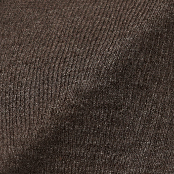 The fabric's softness is achieved by using a traditional loopwheel machine, which knits very slowly from bottom to top to remove unnecessary tension on the yarn. This slow, careful process ensures a high-quality material with a fluffy, airy texture that is only possible with traditional knitting methods. Because of this process, the material may feature natural irregularities like slightly uneven texture or stitching, adding character to each piece.