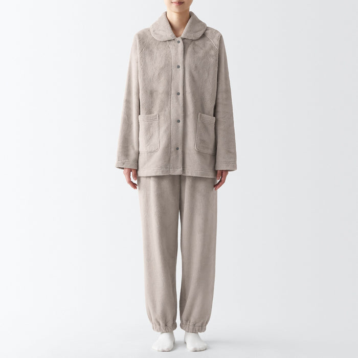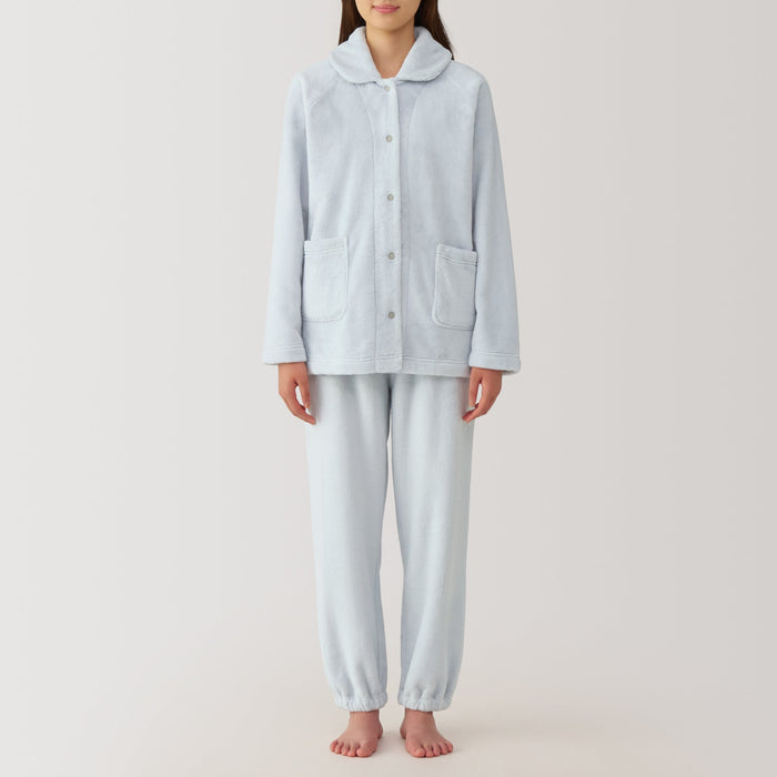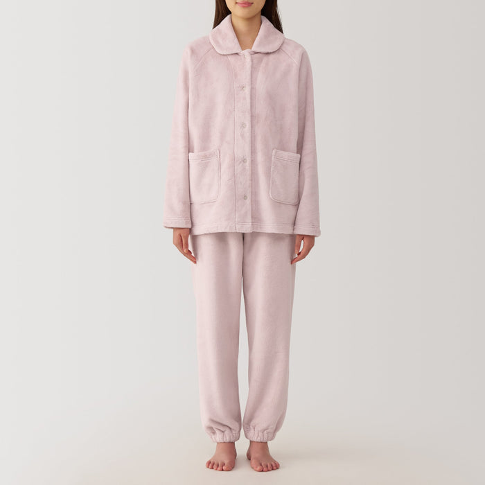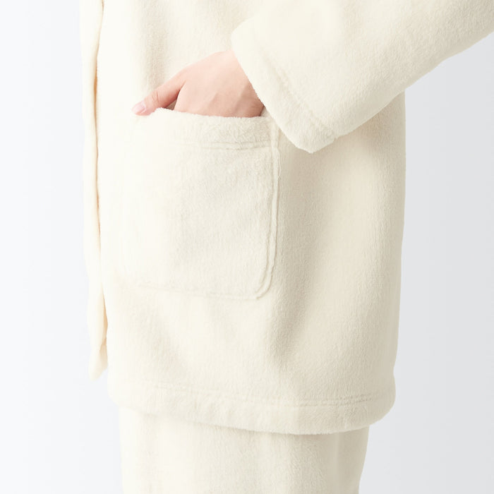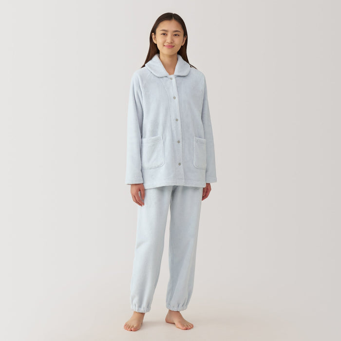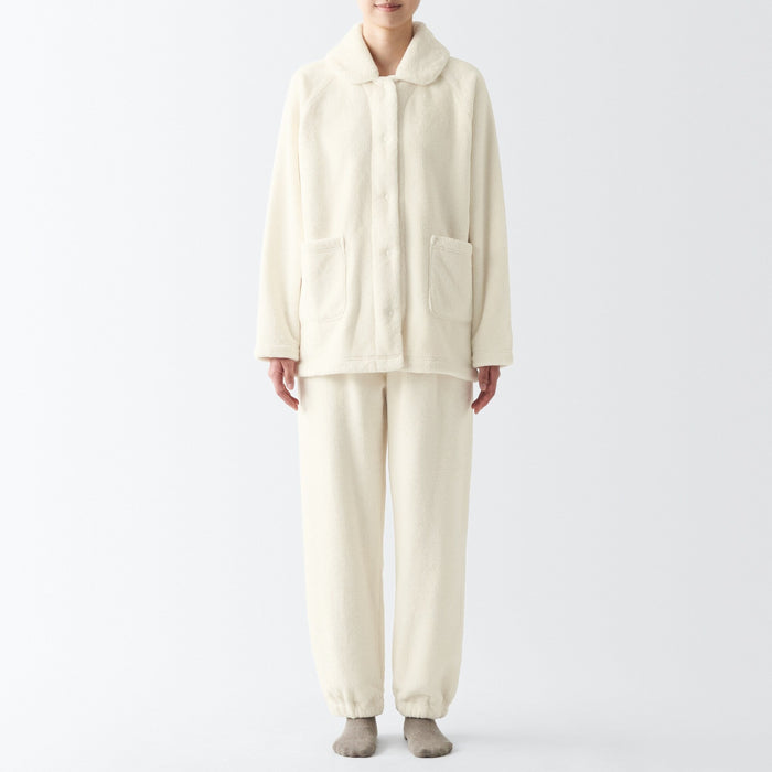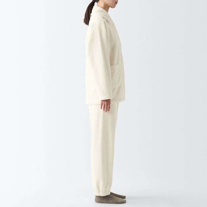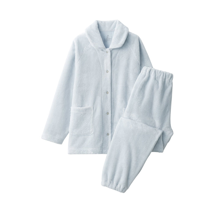 This warm and fluffy pajama set is perfect as both sleepwear and loungewear, constructed without side seams so you can sleep comfortably all night. Made with eucalyptus-based recycled fiber for an airy and soft feel. The waistband is elastic for a comfortable fit, and the pant hems are elasticized to keep warmth inside and to prevent them from dragging.