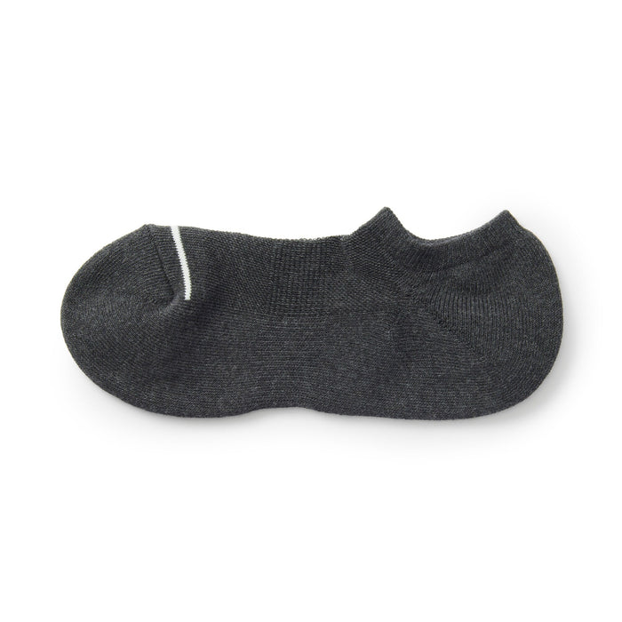 As the heel is at a right angle, the socks are knitted at a right angle to wrap comfortably around the heel and prevent the fabric from sagging and slipping off. Smooth textured pile on the sole.
