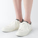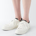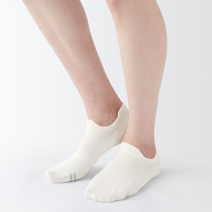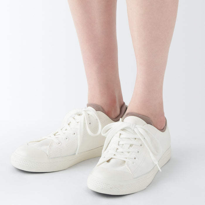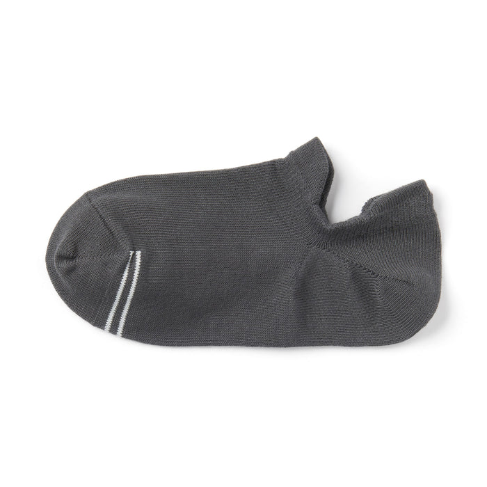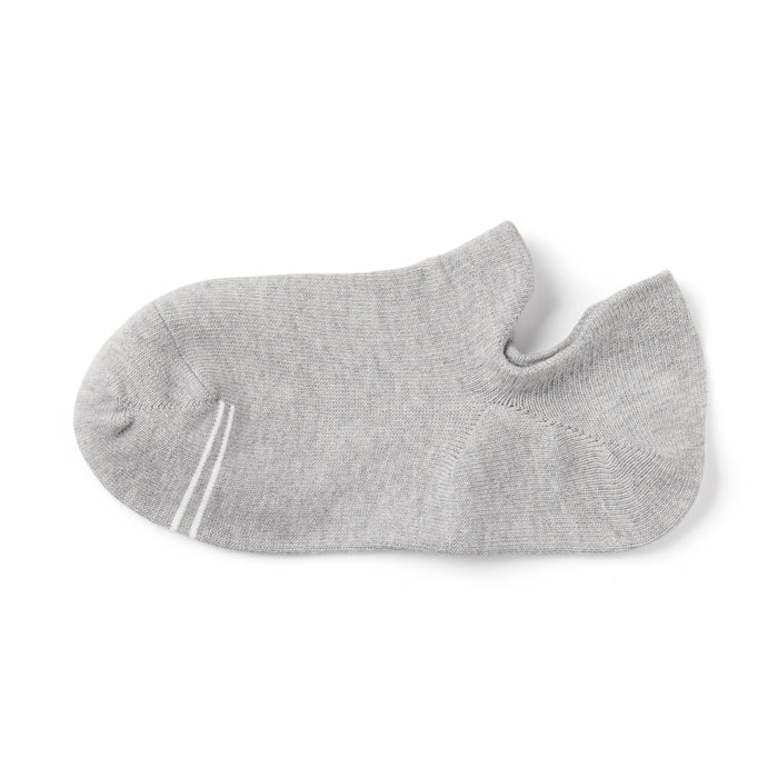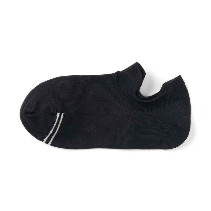Low cut sneaker socks with tabs on the front and back. As the heel is at a right angle, the socks are knitted at a right angle to wrap comfortably around the heel and prevent the fabric from sagging and slipping off.