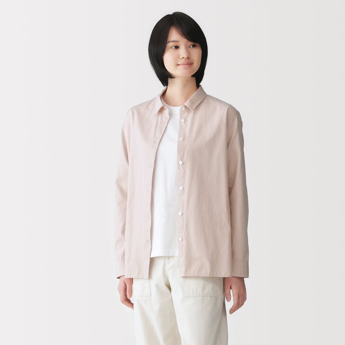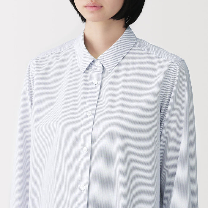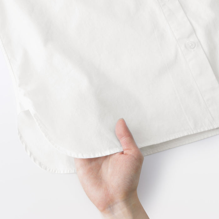 Made from organic cotton fabric that has a gentle brushed texture and is pre-washed for a cozy and comfortable feel. Our women's broadcloth shirt boasts a versatile design with a regular collar and a length that is longer than traditional shirts, making it perfect for any occasion.