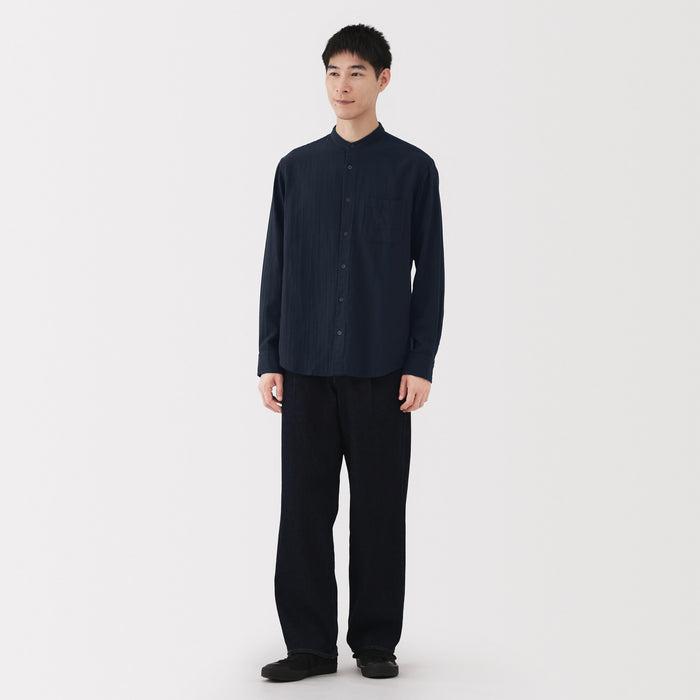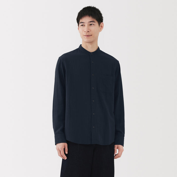 A light and soft men's shirt with a stand collar and loose silhouette.