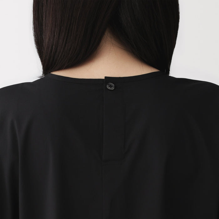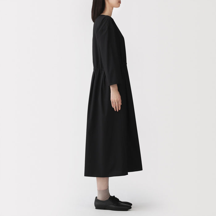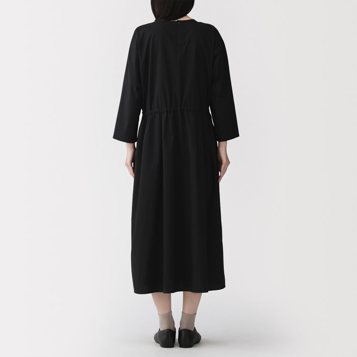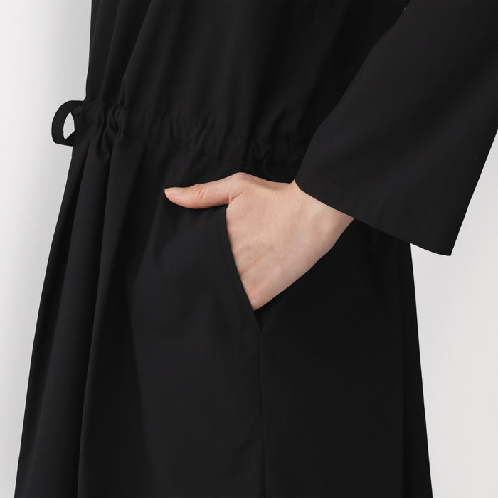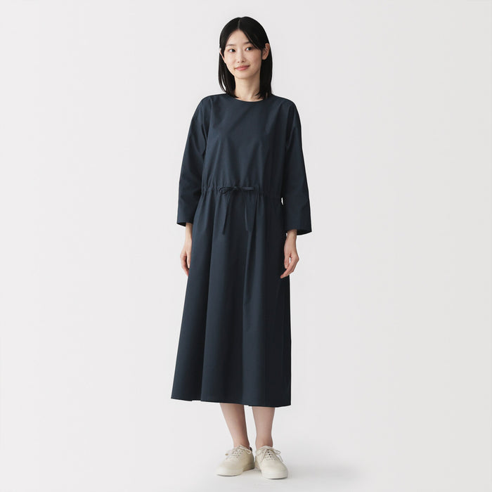 This women's pullover dress is perfect for both everyday wear and business situations. The waistband is adjustable with the string, allowing you to change the silhouette. Made with a firm organic cotton blend material, it is lightweight, comfortable, and gives a neat impression.