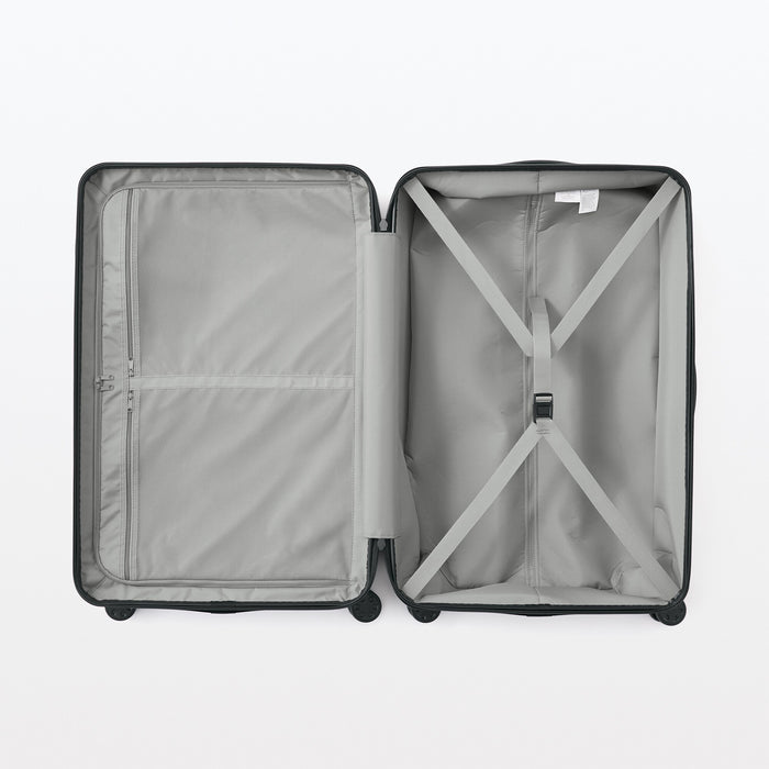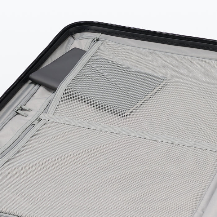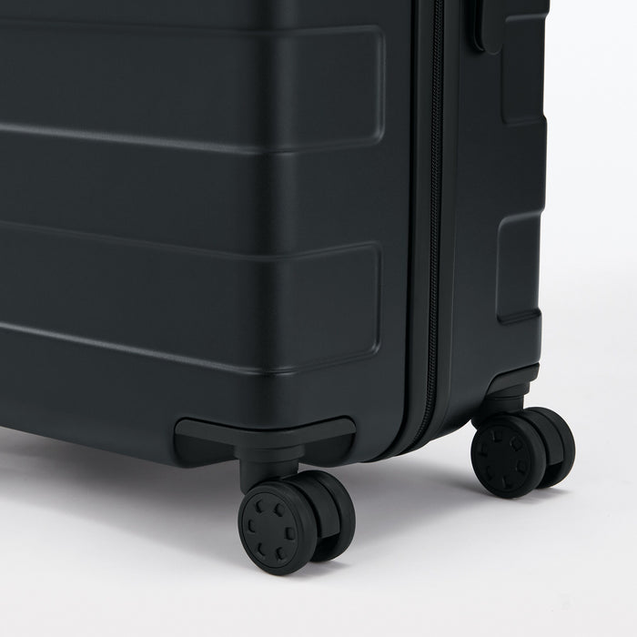 This best-selling luggage gets an eco-friendly upgrade and a sleek new appearance with a flatter, matte texture. Its spacious 75L capacity is ideal for packing everything you need for a week-long trip. Plus, it includes a wheel stopper feature and an adjustable handle for convenience. The material has been carefully reviewed and the weight has been reduced from previous models, giving you the ability to bring even more belongings. The twin-wheel caster runs smoothly and quietly, and the built-in TSA-approved lock means you won't have to worry about airport security breaking a padlock while inspecting your luggage.