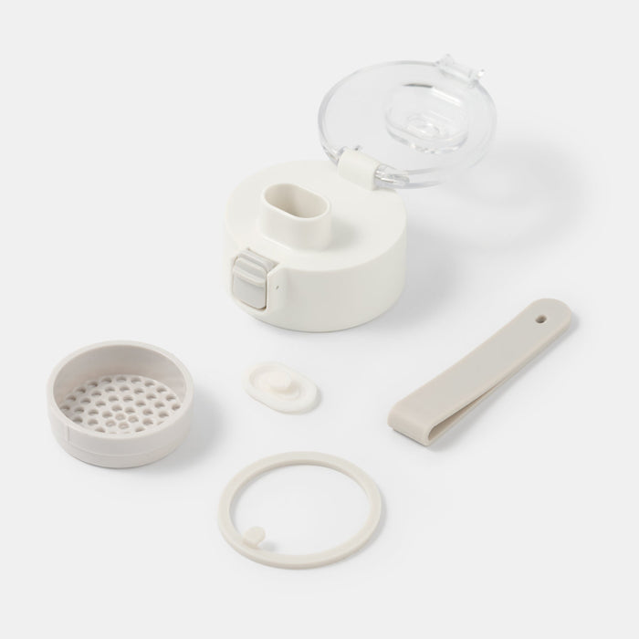 Its slim size is comfortable to hold, designed with a convenient one-touch, lockable lid that is effortless to open with one hand. A tea strainer is also included inside, perfect for enjoying cold teas. It also has a removable silicone sling that can be used as a handle or hung on a backpack for easy travel.