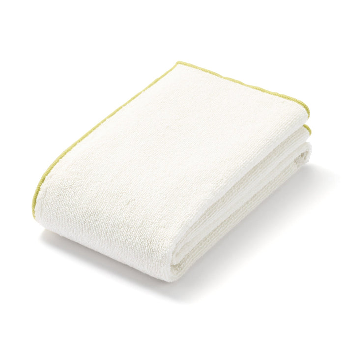 This pile weave face towel is great for drying wet hands or washing your face. The perimeter is made with narrow stitching and pile all the way to the edge, so it doesn't take up much space when folded.