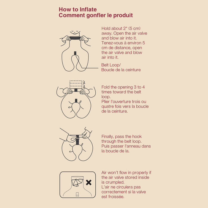 This travel neck cushion easily inflates by blowing air into it. When not in use, it can be rolled up for compact carrying to save space, perfect for travelling on-the-go. The cover can be removed for washing for added convenience.
