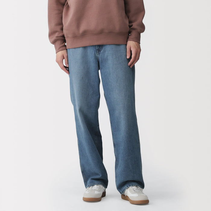 Men's wide leg denim pants designed with a stylish silhouette that gives you room to move comfortably all day. The waistband can be adjusted with a drawstring hidden on the inside, providing you with the perfect fit.