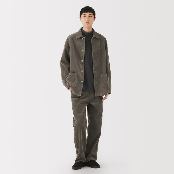 A men's Corduroy work pants made with a blend of cotton and kapok fiber, an environmentally friendly plant grown without pesticides. By using a fabric that mixes kapok with cotton, it is softer and lighter than conventional 100% cotton.