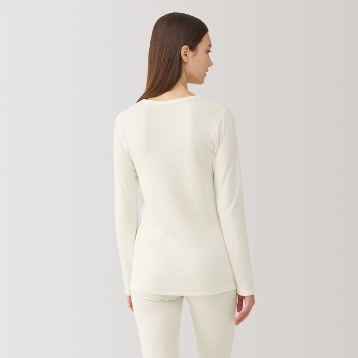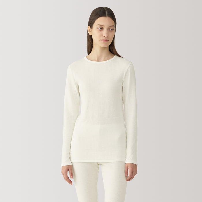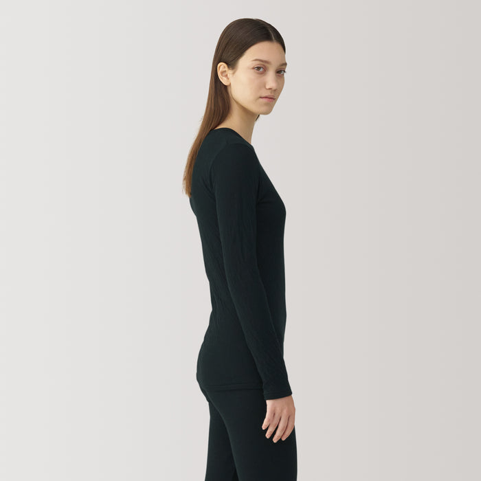 It is made of double gauze jersey material using fine cotton cashmere, creating a fluffy, airy, comfortable feel. The cashmere blend allows for moderate elasticity and stretch. As you continuously wear it over time, the better it fits on your body.
