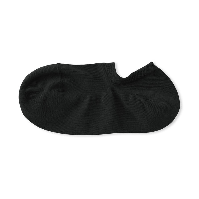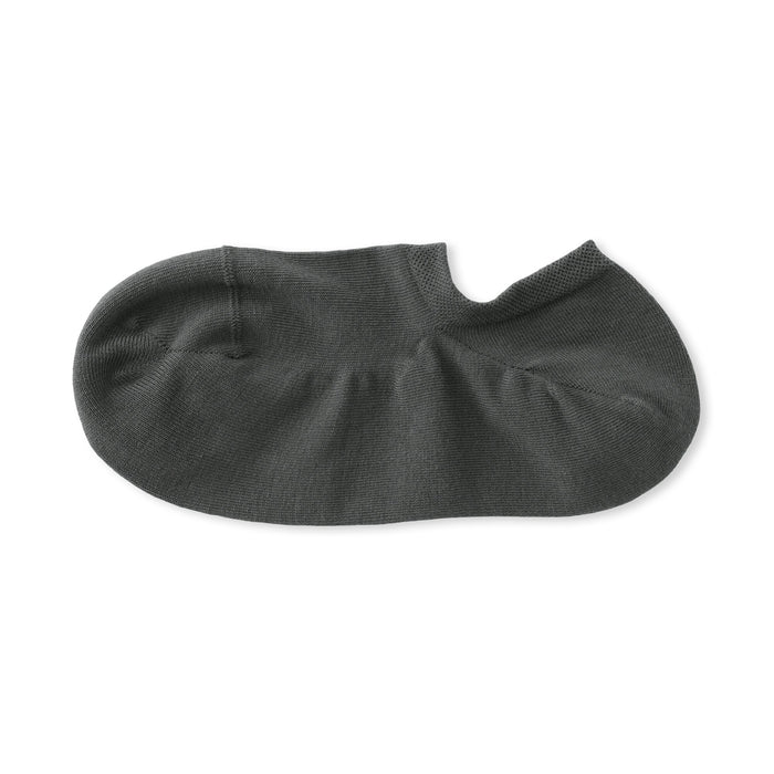 These socks are knitted at a right angle to wrap comfortably and naturally around the heel without slipping down. The seam line on the toes are stitched flat to prevent discomfort, and the reinforced threading at the toes and heel has a sweat deodorizing effect.