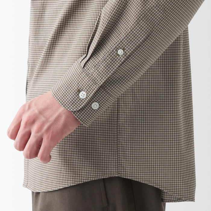 A classic striped/checkered cotton broad shirt. The cotton fabric was pre-washed during the manufacturing process to preserve the original softness of the fabric.