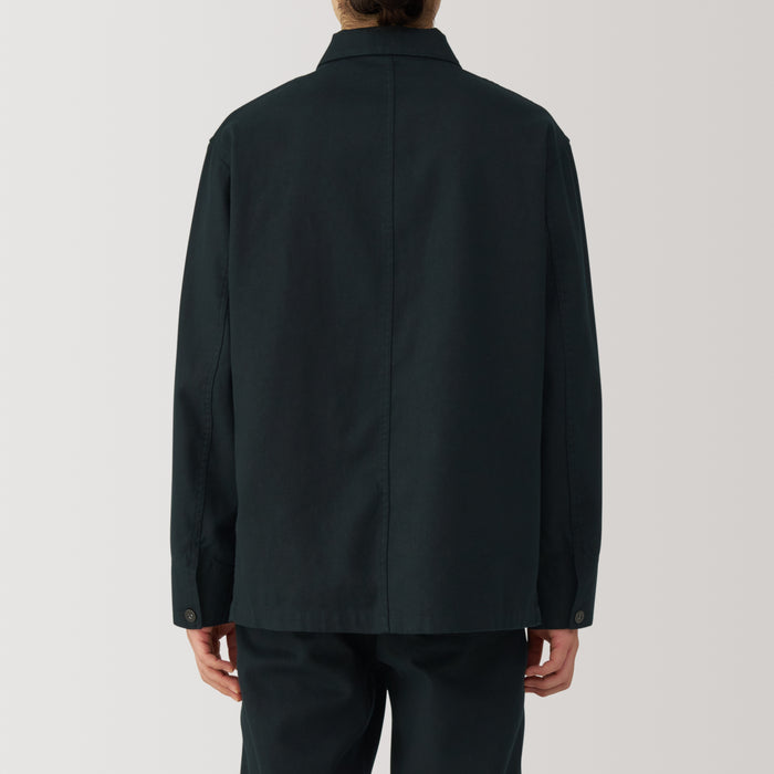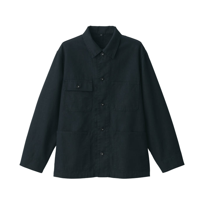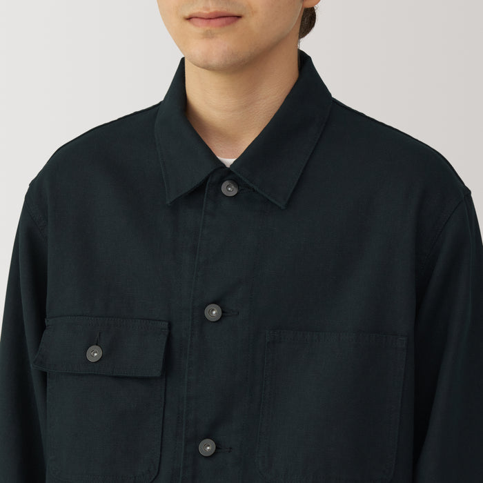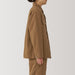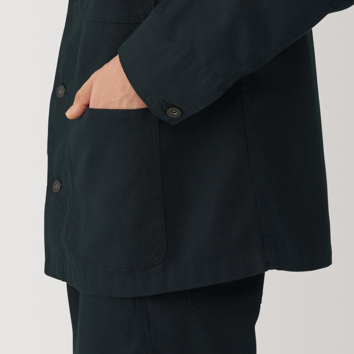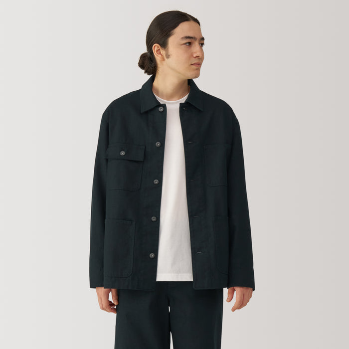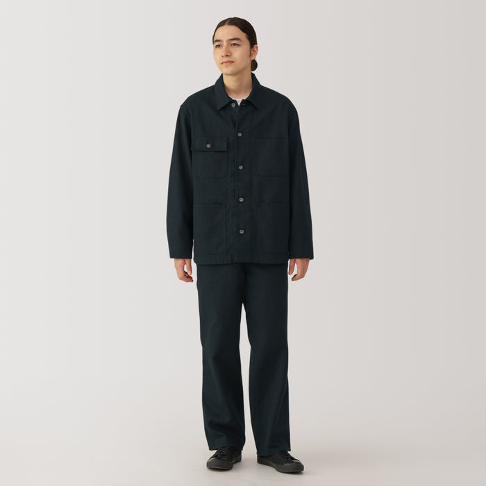 A jacket made with a blend of organic cotton, polyester, and kapok fiber, an environmentally friendly plant grown without pesticides. By using a fabric that mixes kapok with cotton, it is softer and lighter than conventional 100% cotton.