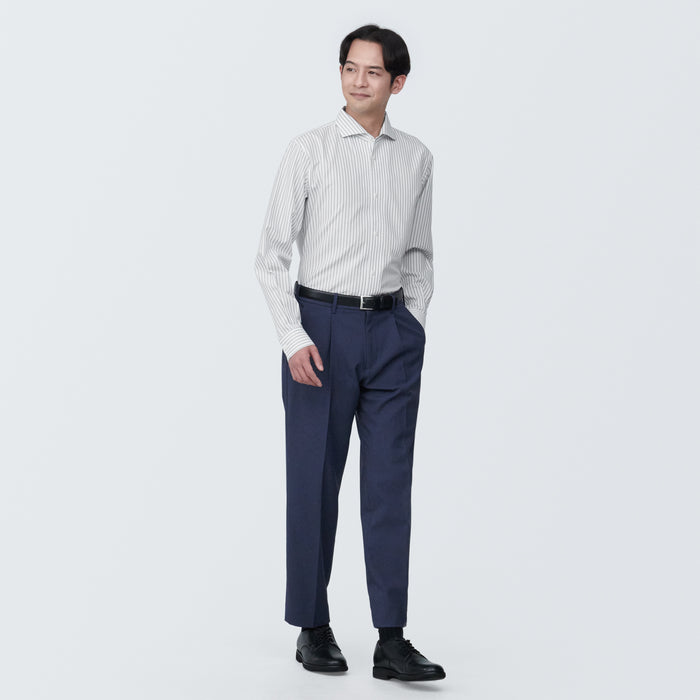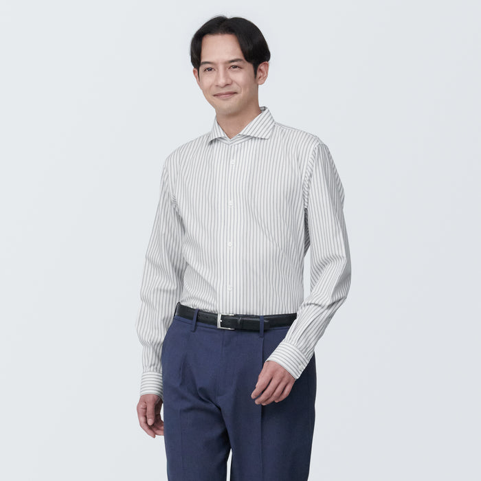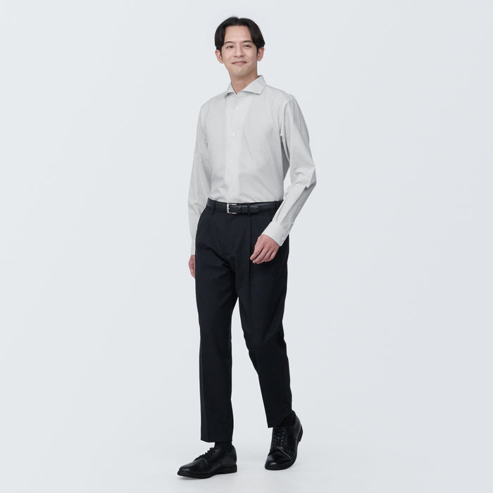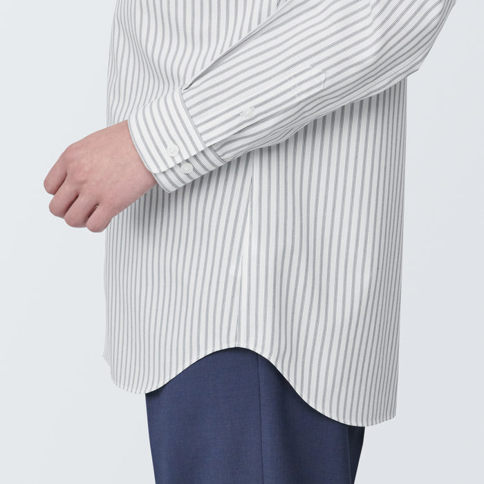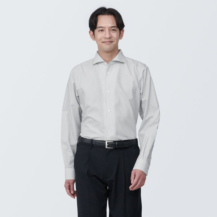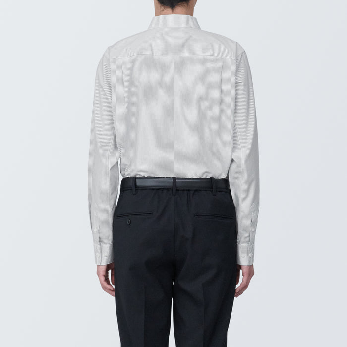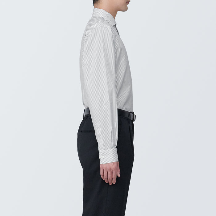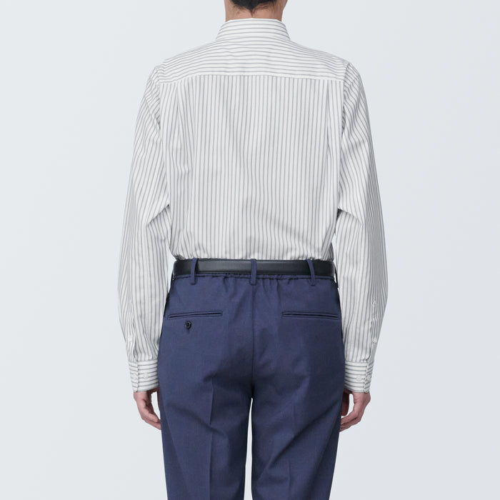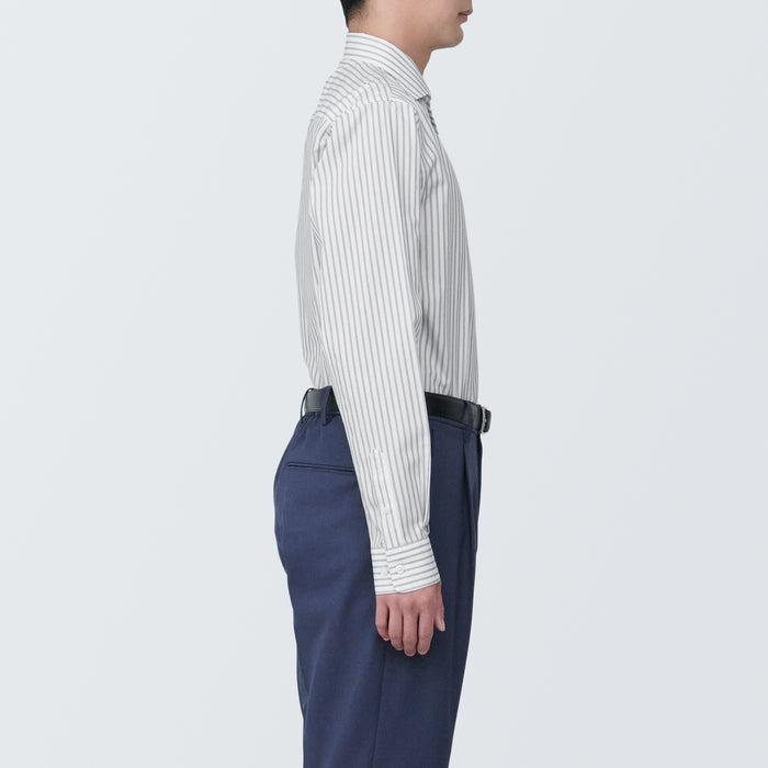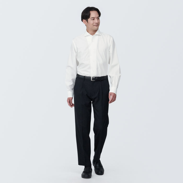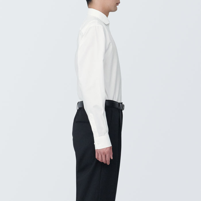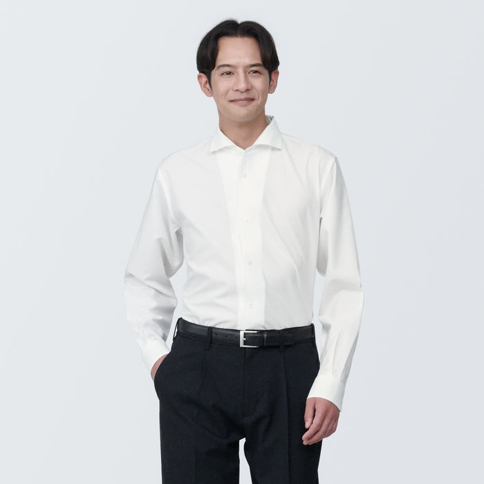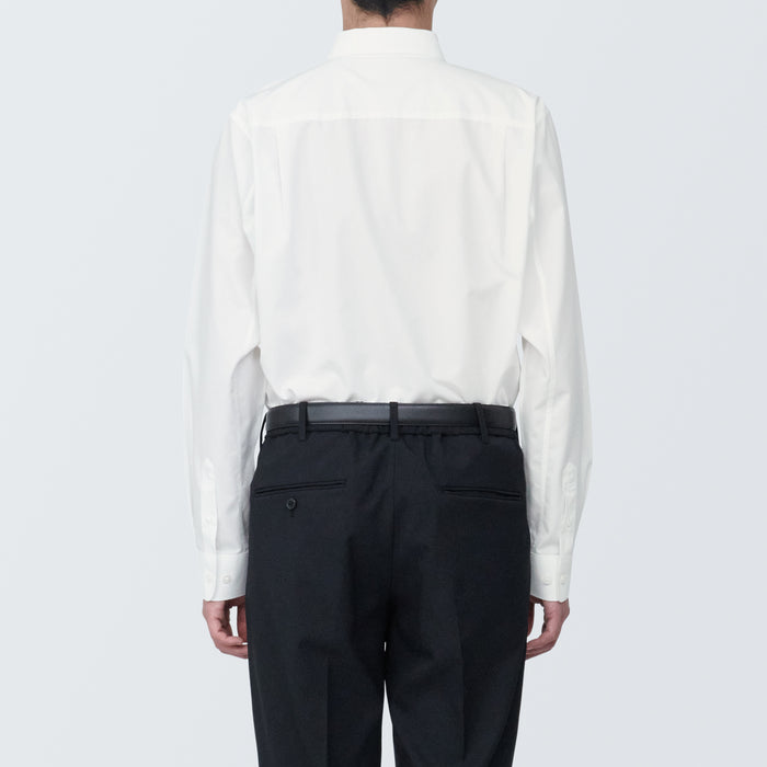 A men's business shirt made of 100% organic cotton and doesn't need ironing. The fabric has been treated to stay wrinkle-free and has special tape in the seams to reduce wrinkles. It is the perfect length that makes it easy to wear tucked in or out. The classic design can be styled for a variety of occasions, providing a polished look for both everyday and professional settings, on or off the job.