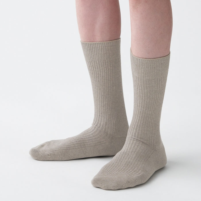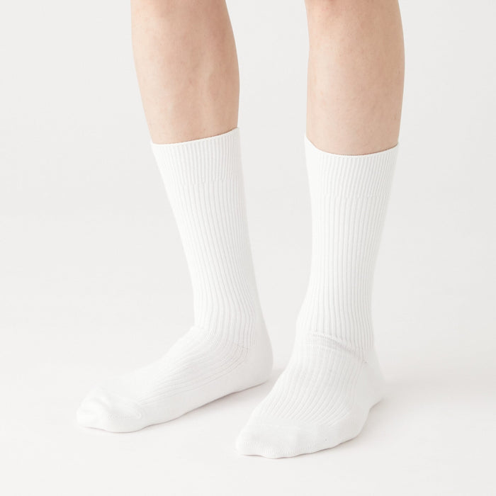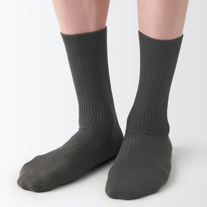 As the heel is at a right angle, the socks are knitted at a right angle so they can wrap comfortably around the heel and prevent the fabric from sagging and slipping off. No elastic around openings, sweat deodorizing effect.