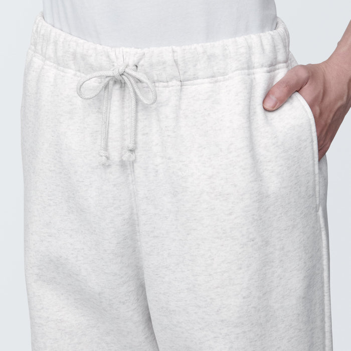 Wide sweatpants that feel soft and fluffy. The fabric does not cling easily.