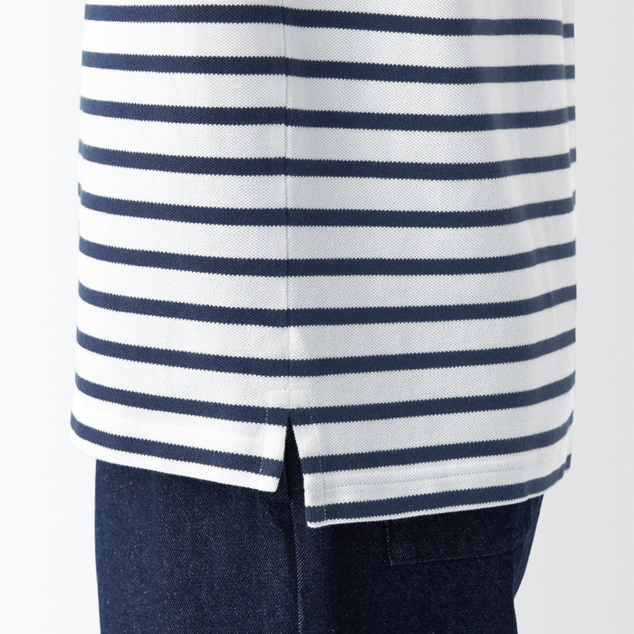 A button-down polo shirt made from smooth, cooling pique material. Made with organic cotton.