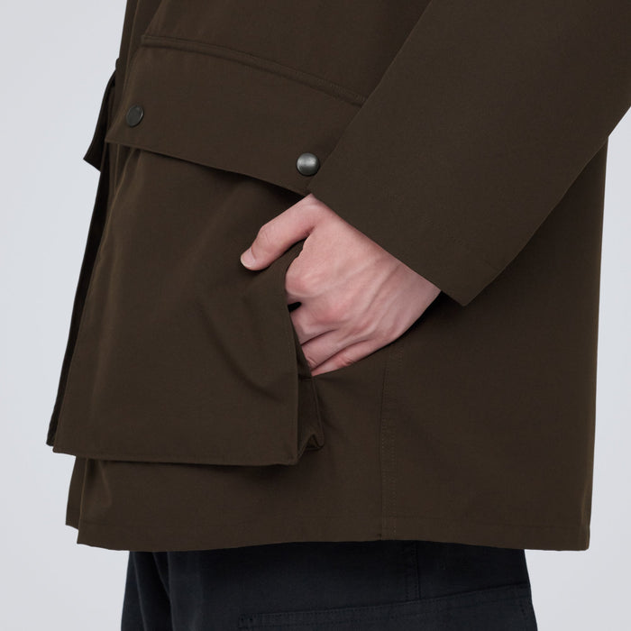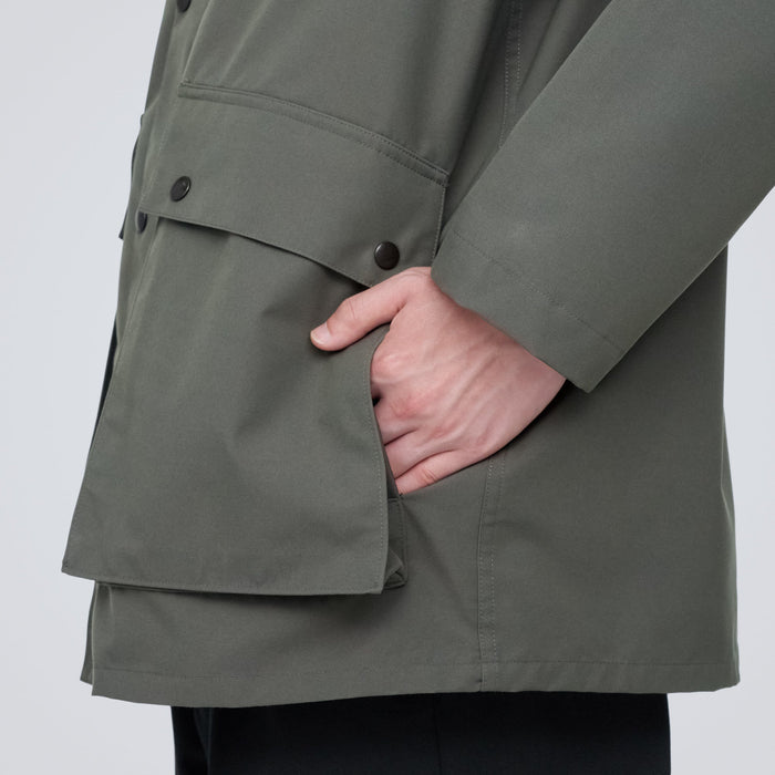 This water repellent jacket can be worn for all seasons, inspired by traditional Japanese straw rainwear.