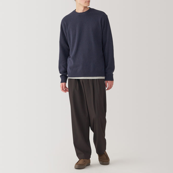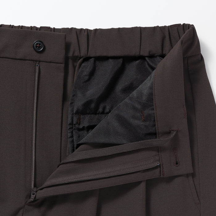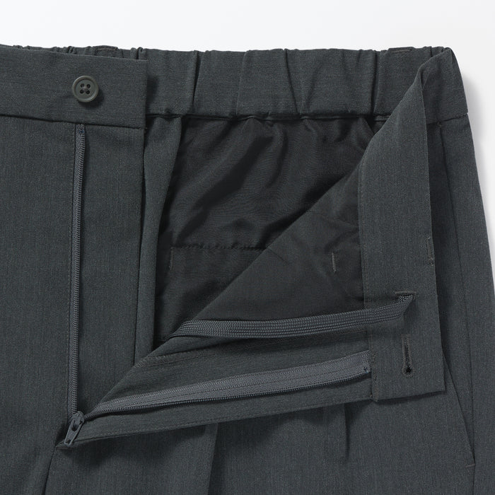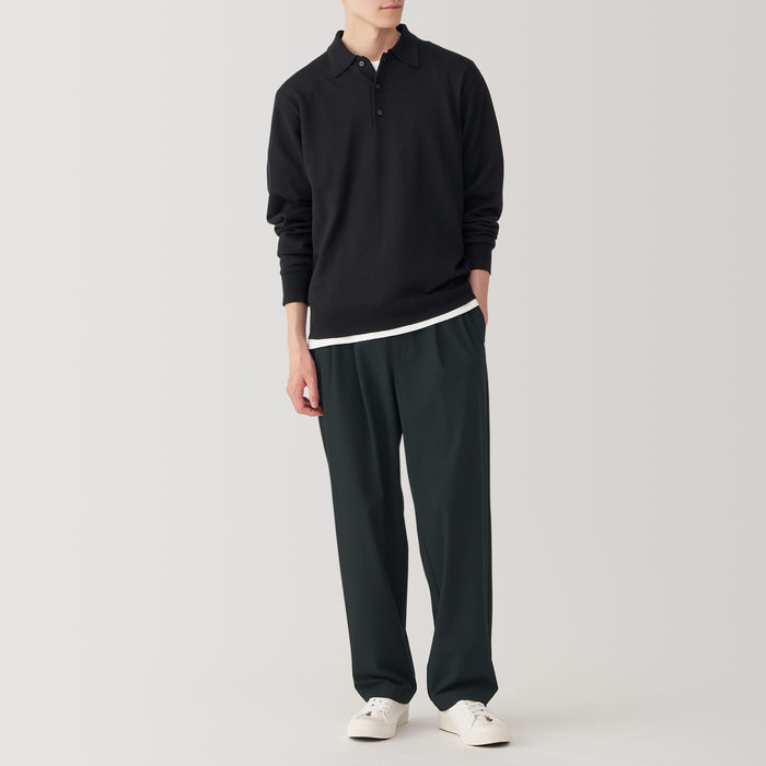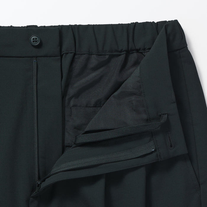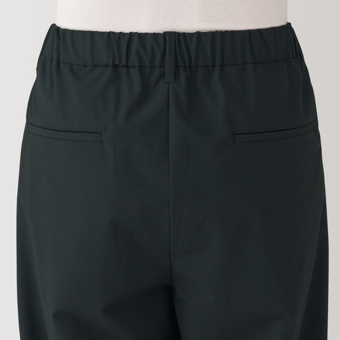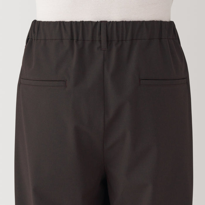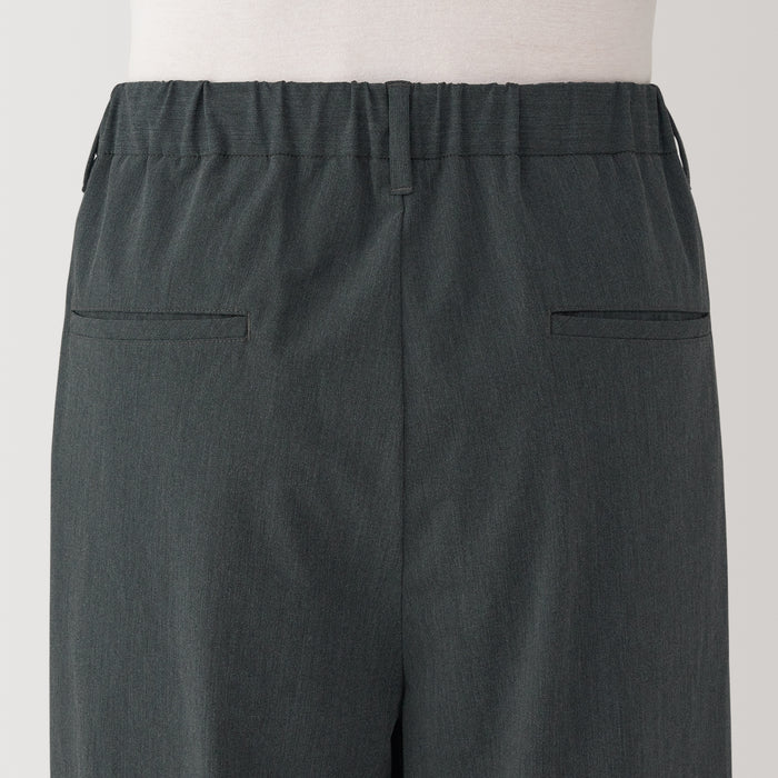 These wide pants are wrinkle-free and designed with a loose silhouette that is comfortable to wear all day. The elastic waistband has a hidden drawstring on the inner side for an adjustable fit, while keeping the outer appearance neat. Made using recycled polyester.