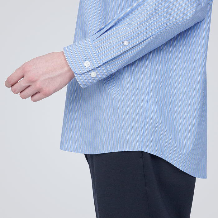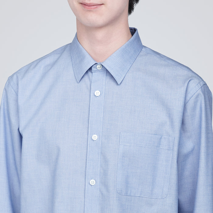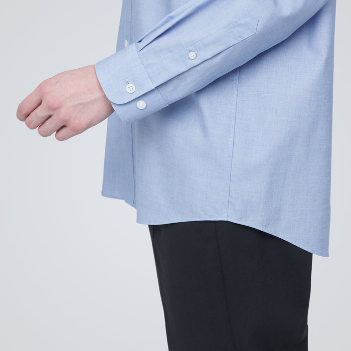 A simple and versatile long sleeve shirt made from organic cotton. Form-stabilizing treatment prevents wrinkling after washing and makes ironing easier.