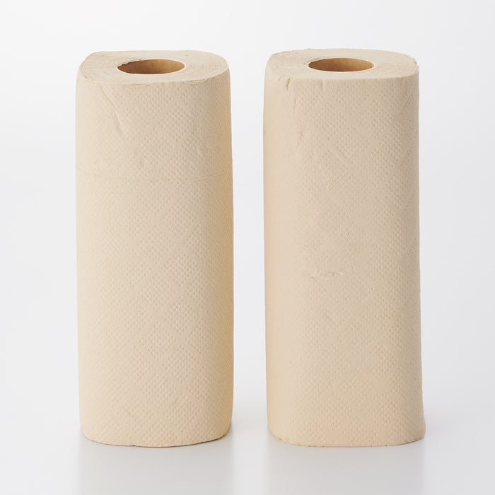 A pack of 2 paper towel rolls, made from 100% fast-growing bamboo and finished without bleach.