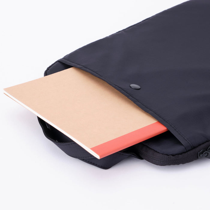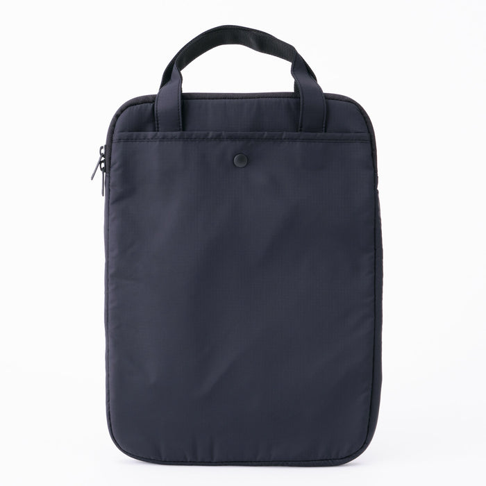 This simple vertical laptop bag is made from lightweight, durable parachute cloth fabric with a water-repellent finish.