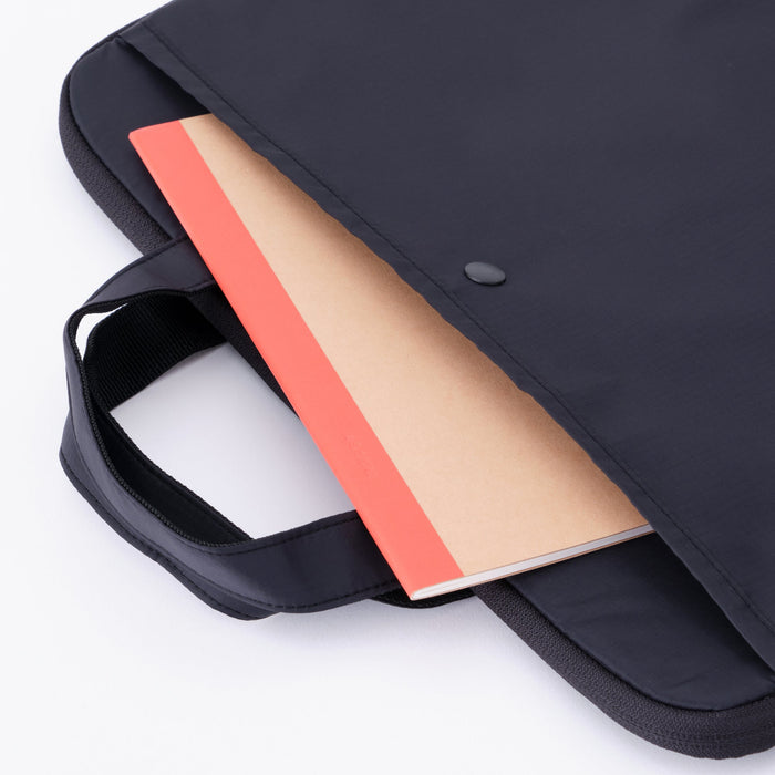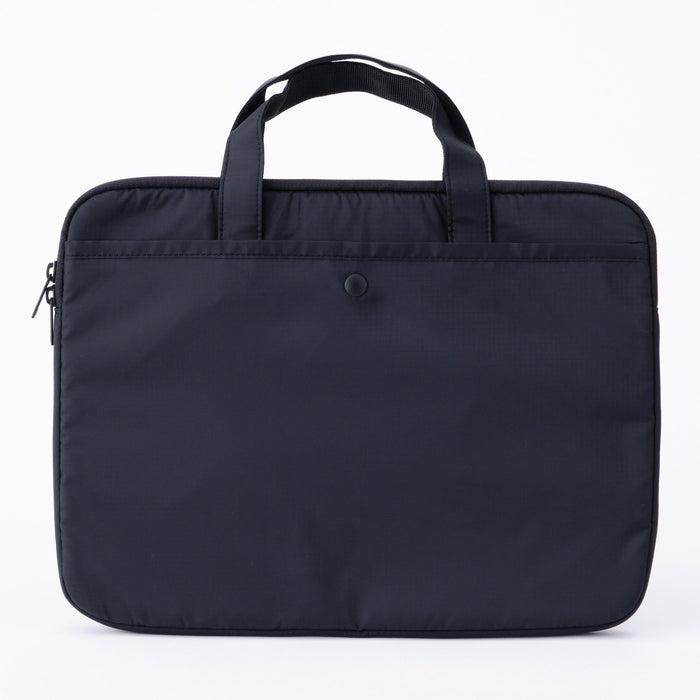 This simple horizontal laptop bag is made from lightweight, durable parachute cloth fabric with a water-repellent finish.