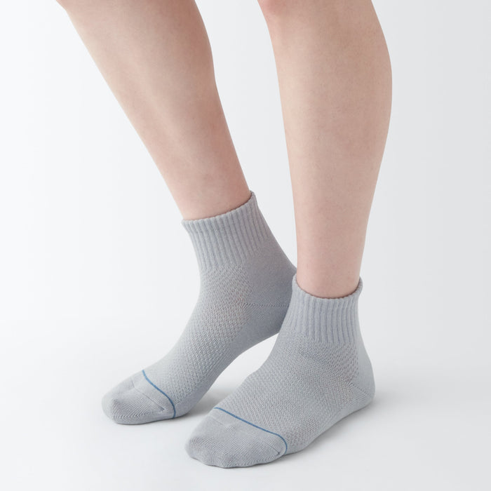 As the heel is at a right angle, the socks are knitted at a right angle to wrap comfortably around the heel and prevent the fabric from sagging and slipping off. Smooth textured pile on the sole.