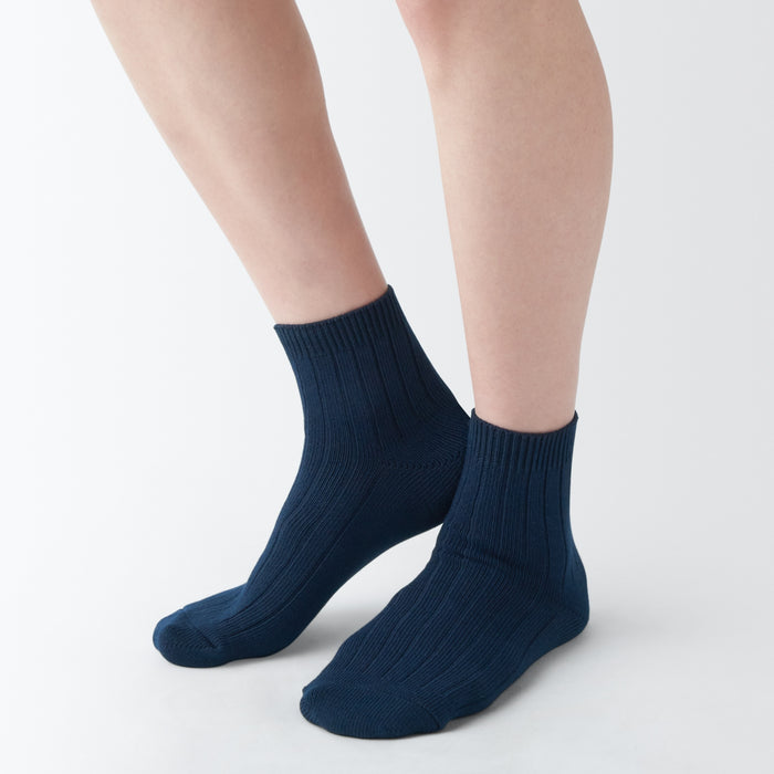 As the heel is at a right angle, the socks are knitted at a right angle to wrap comfortably around the heel and prevent the fabric from sagging and slipping off.
