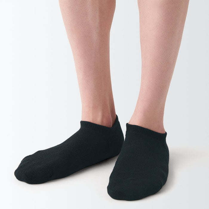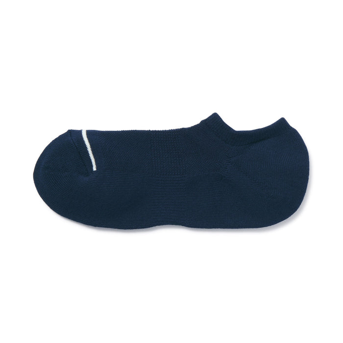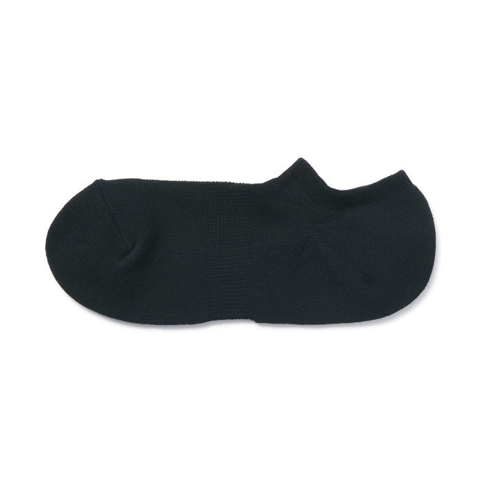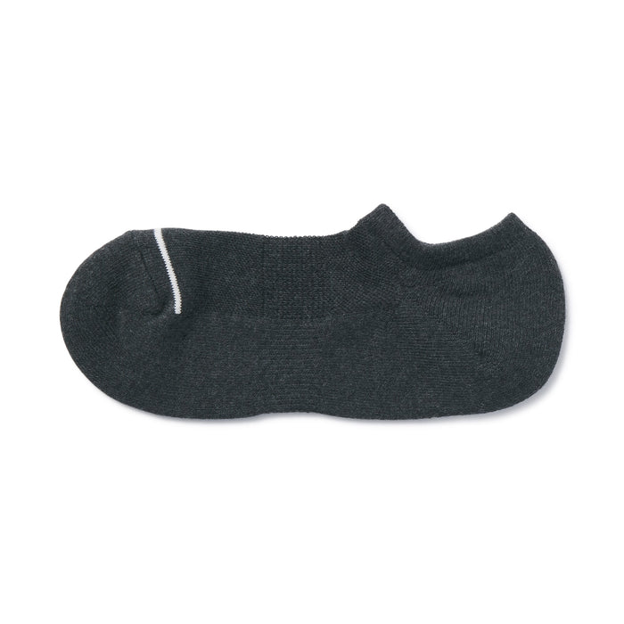 As the heel is at a right angle, the socks are knitted at a right angle so they can wrap comfortably around the heel and prevent fabric from sagging and slipping off. Smooth textured pile on sole.