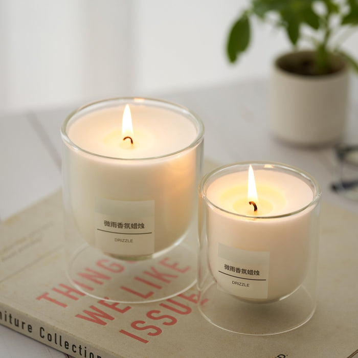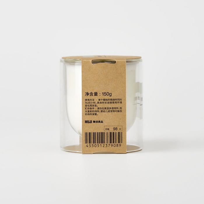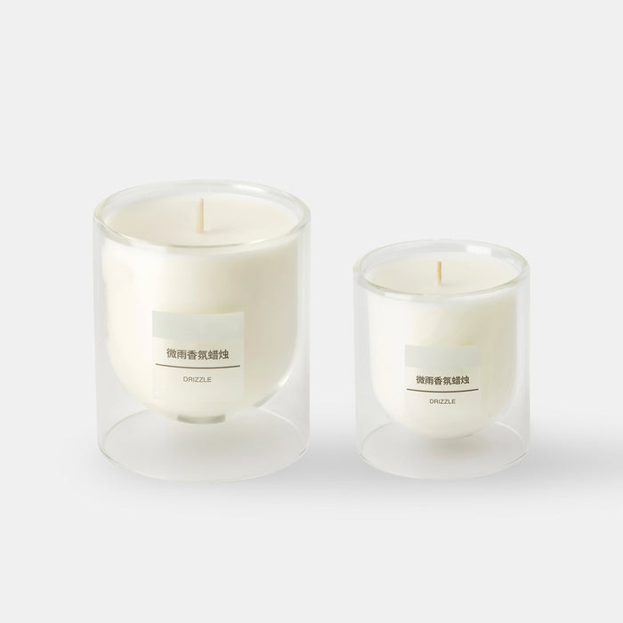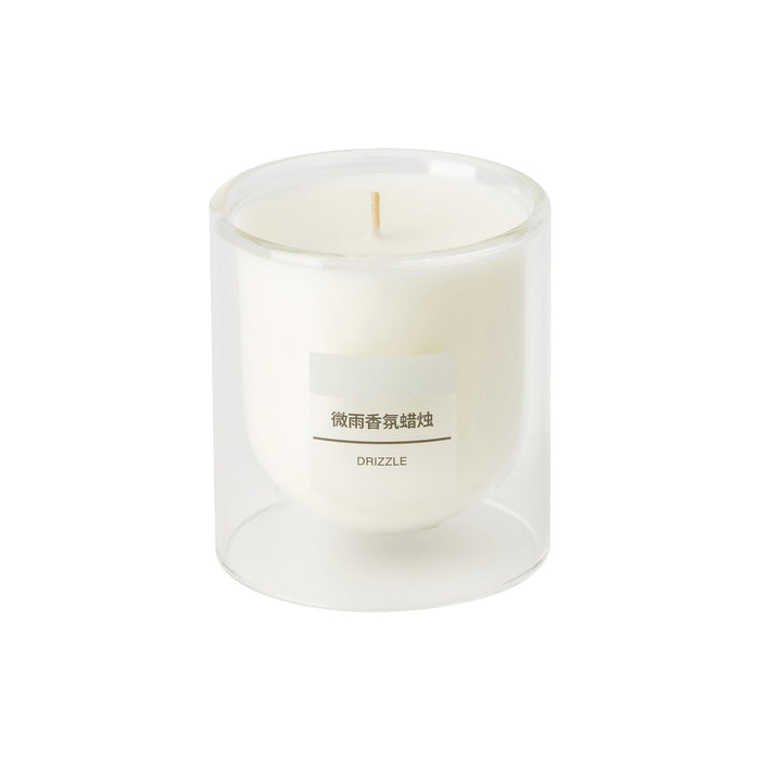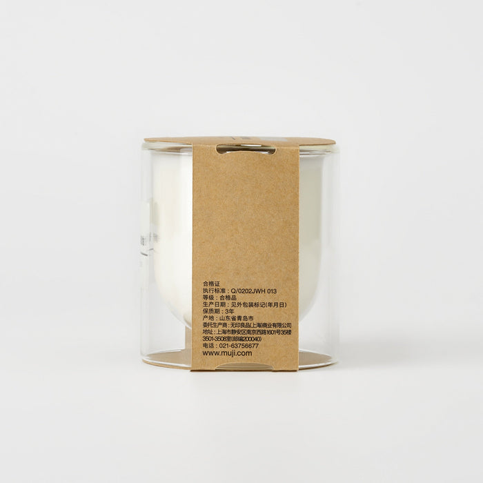 The double-wall glass keeps the candle cool and safe to enjoy. Its clean, transparent design makes it a perfect companion for moments of calm.