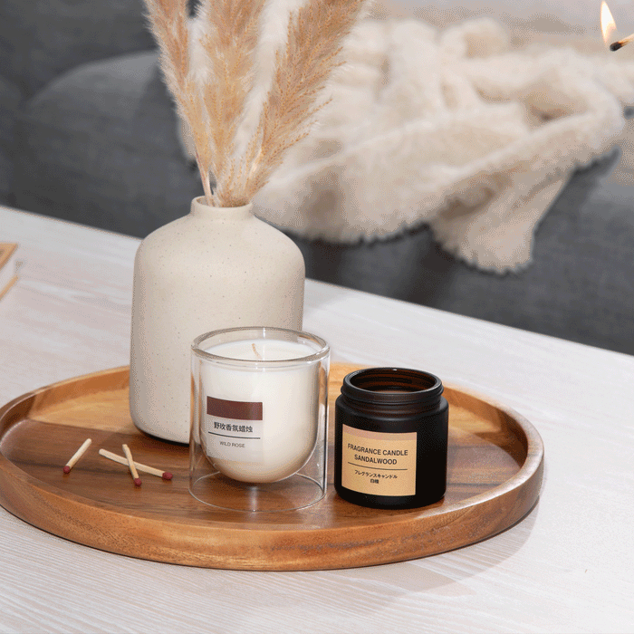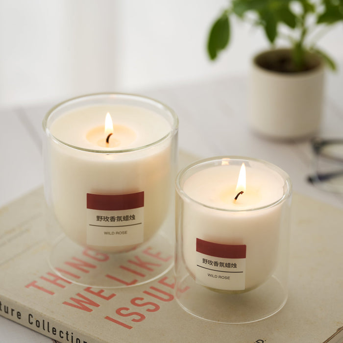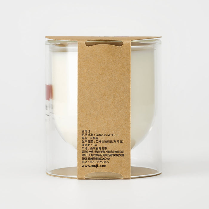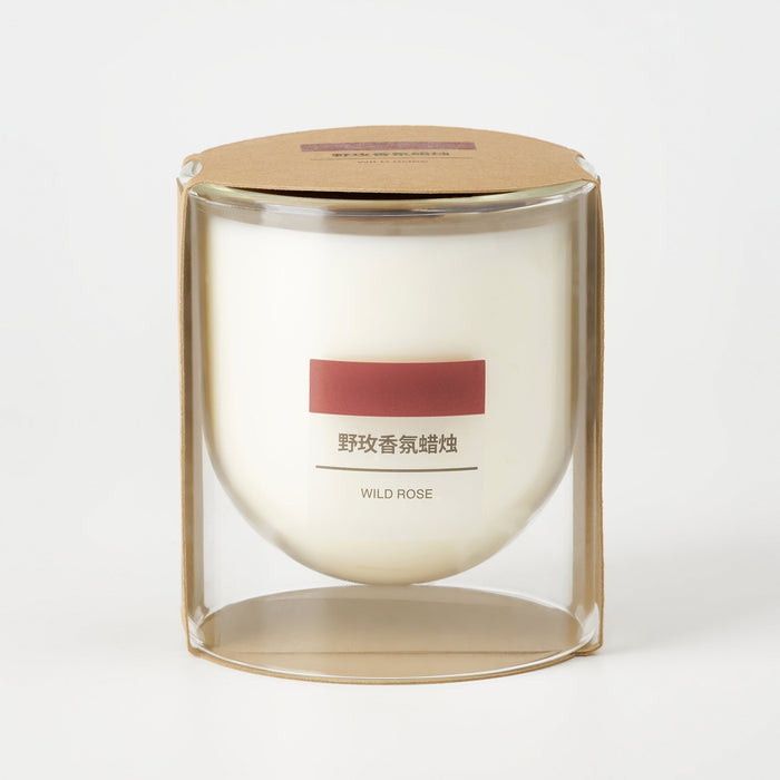 The double-wall glass keeps the candle cool and safe to enjoy. Its clean, transparent design makes it a perfect companion for moments of calm.