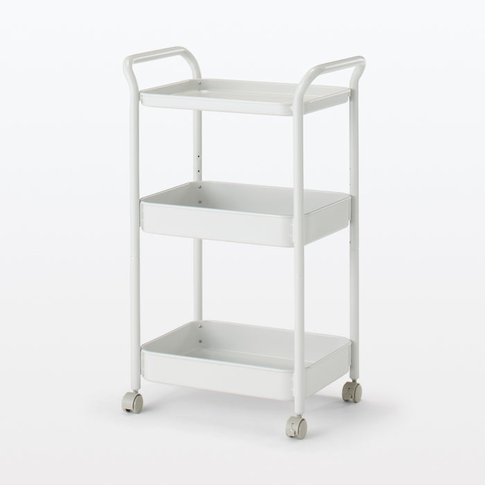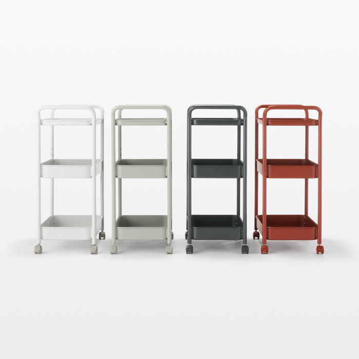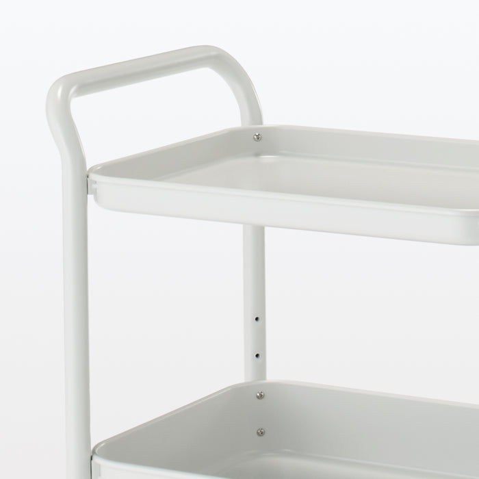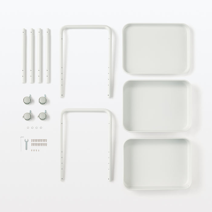 A simple wagon rack made using trays attached to a bent steel pipe. Recommended for use around the kitchen, desks, or storying children's supplies. You can easily move it wherever you need it, so you can use it anywhere.