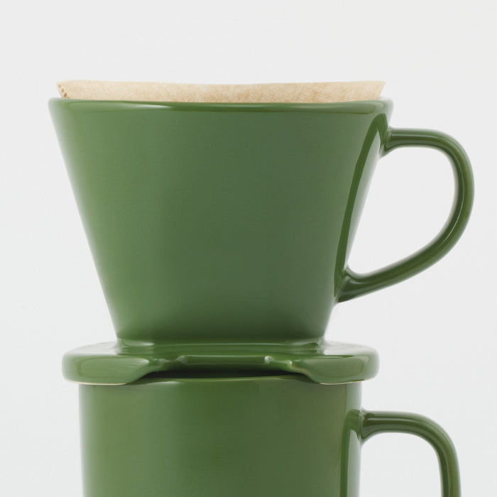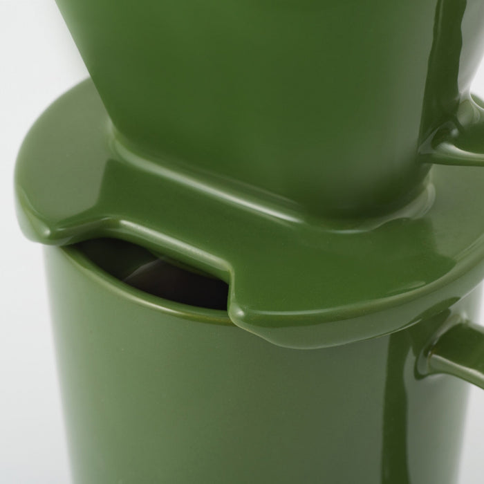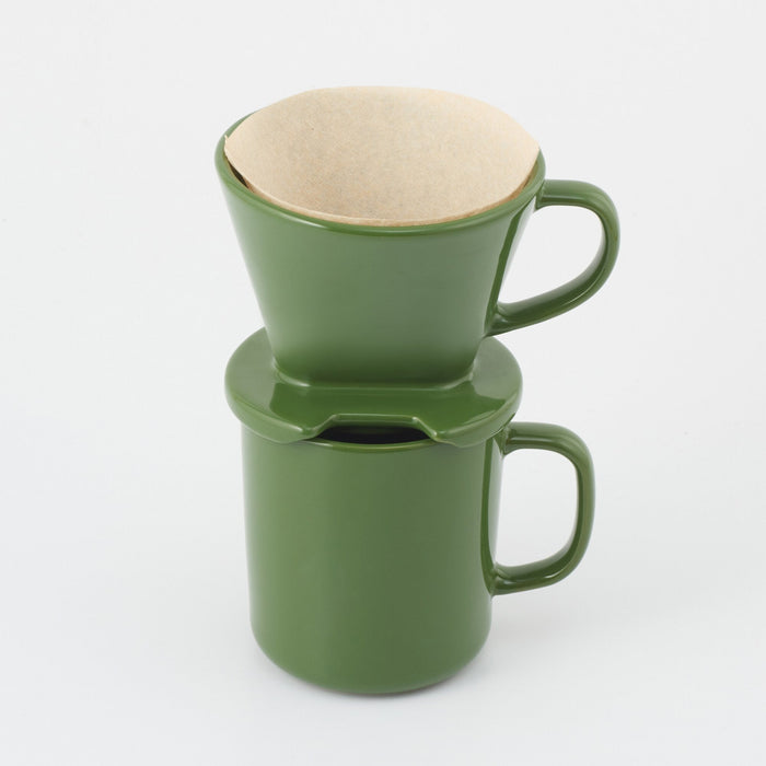 Elevate your morning routine with this convenient stoneware coffee dripper, providing the perfect pour-over brew directly into your mug. The opening on the side lets you easily check the amount of coffee that has brewed without having to lift it.