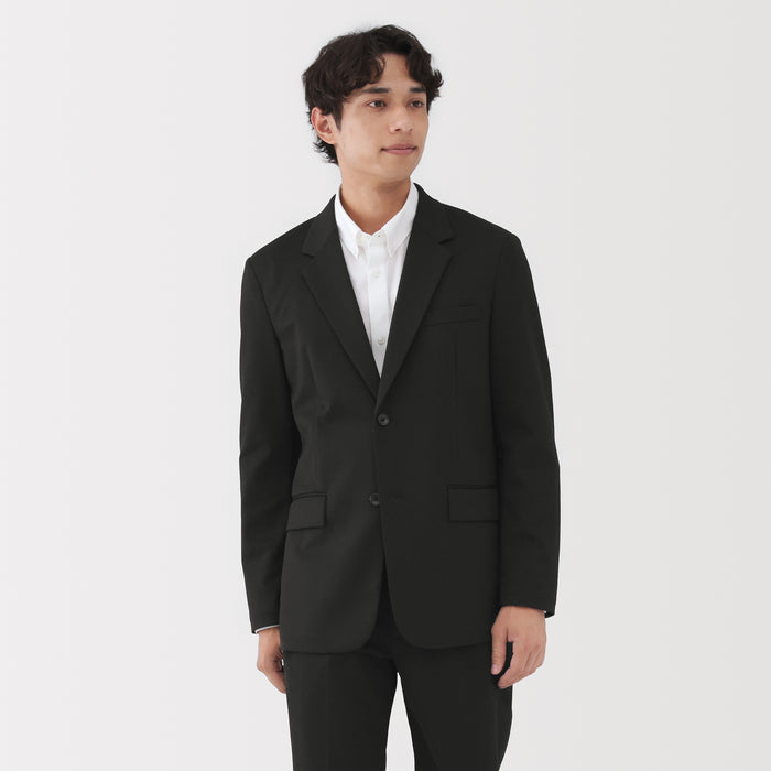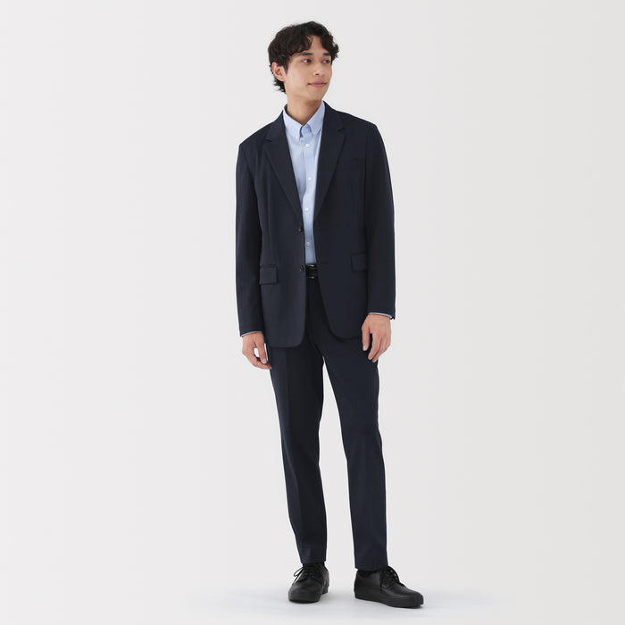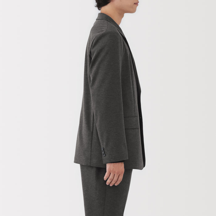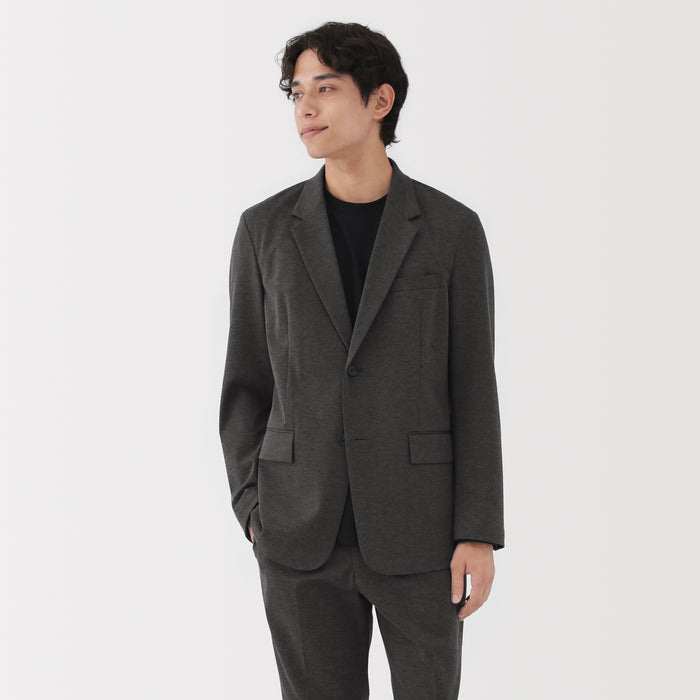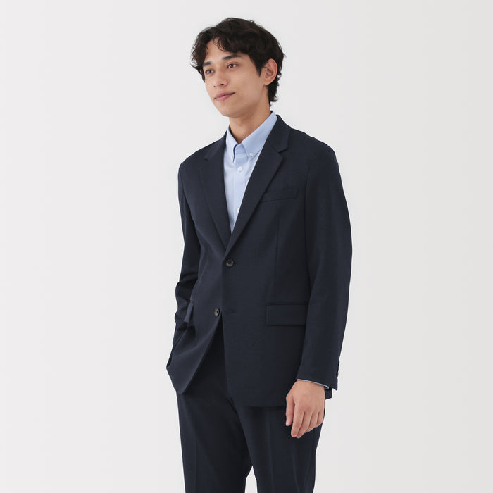 This lightweight men's business jacket is crafted from stretchy jersey fabric that is easy to move in and care for, providing all-day comfort. Its sleek design makes it suitable for any occasion.