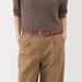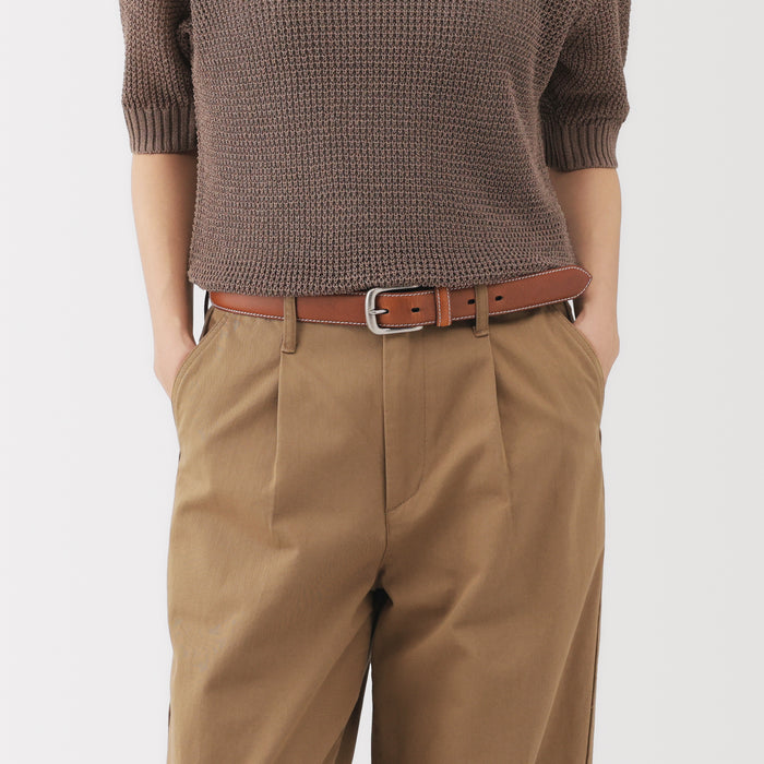 An adjustable unisex belt made from genuine leather tanned with natural vegetable tannins, featuring medium-width stitching. Cut off the excess length to adjust it to the right size.
