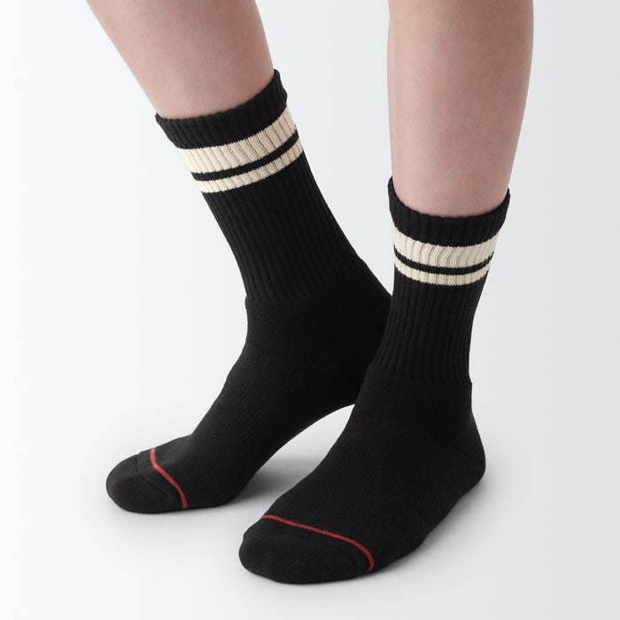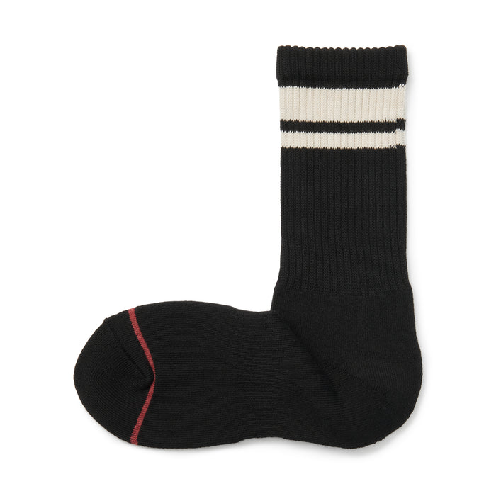 Winter socks constructed with a blend of soft, insulated cotton and wool yarns. A portion of the cotton has been specially treated to capture your body heat, keeping you warm during colder weather. They have a red or white line marker at the toes to identify after washing.