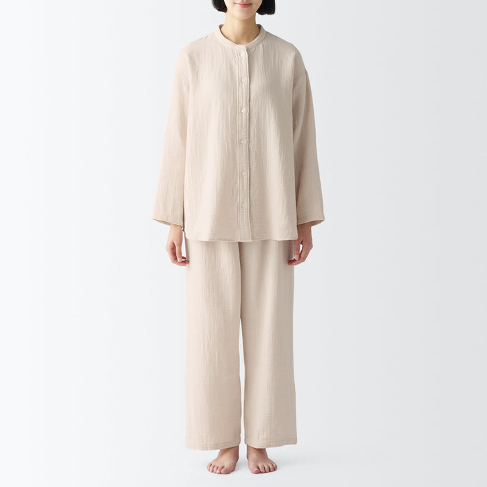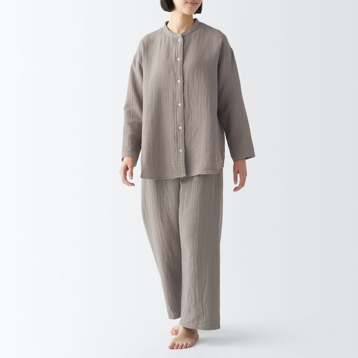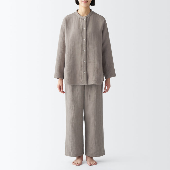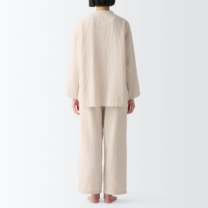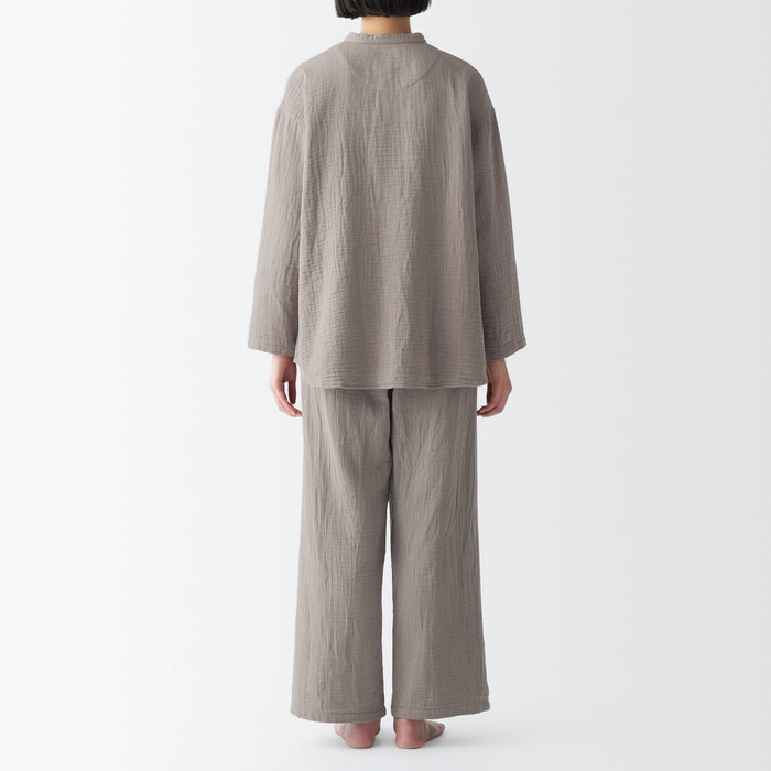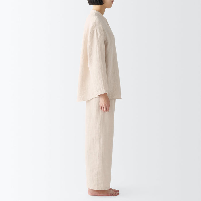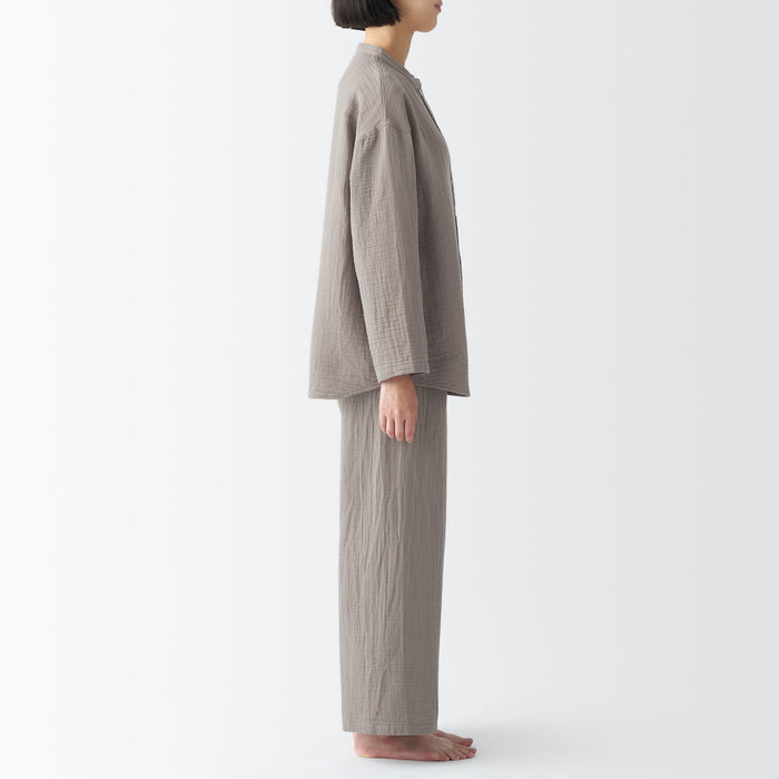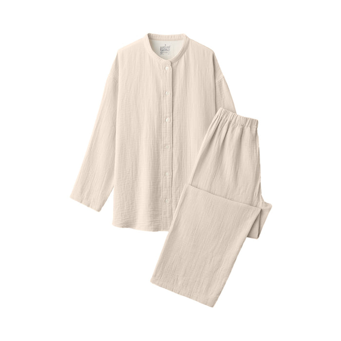 A set of pajamas made using a breathable cheesecloth gauze material that is plush and soft on skin.