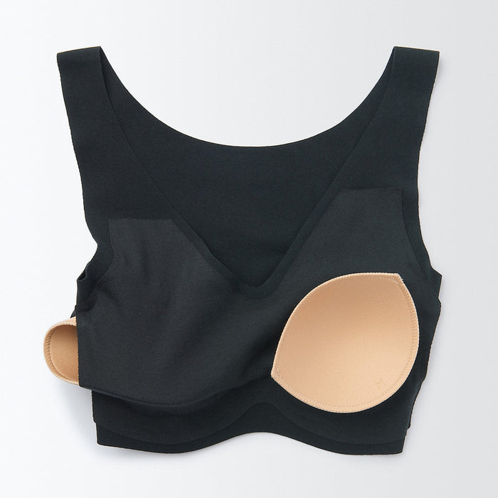 The fabric stretches 360 degrees in all directions and fits the chest well. The fabric is smooth and has no seams, so it does not show through your outer layers. The cups can be inserted and removed, and the position can be adjusted comfortably.