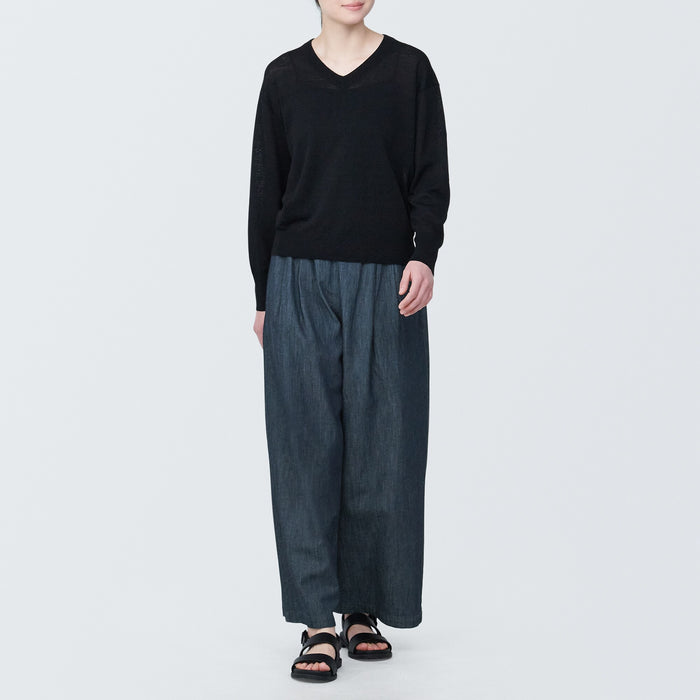 Lightweight wide leg trousers made with a soft and durable blend of cotton and linen.
