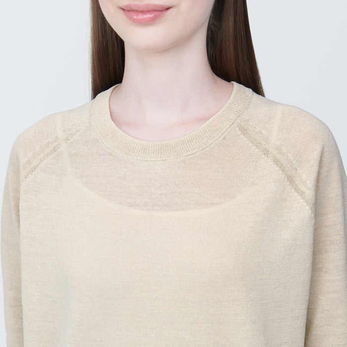 A crew neck sweater knitted with eco-friendly hemp and elastic yarn for a soft, light texture. This sweater helps protect your skin and blocks over 80% of UV rays, due to hemp's natural resistance to UV light.