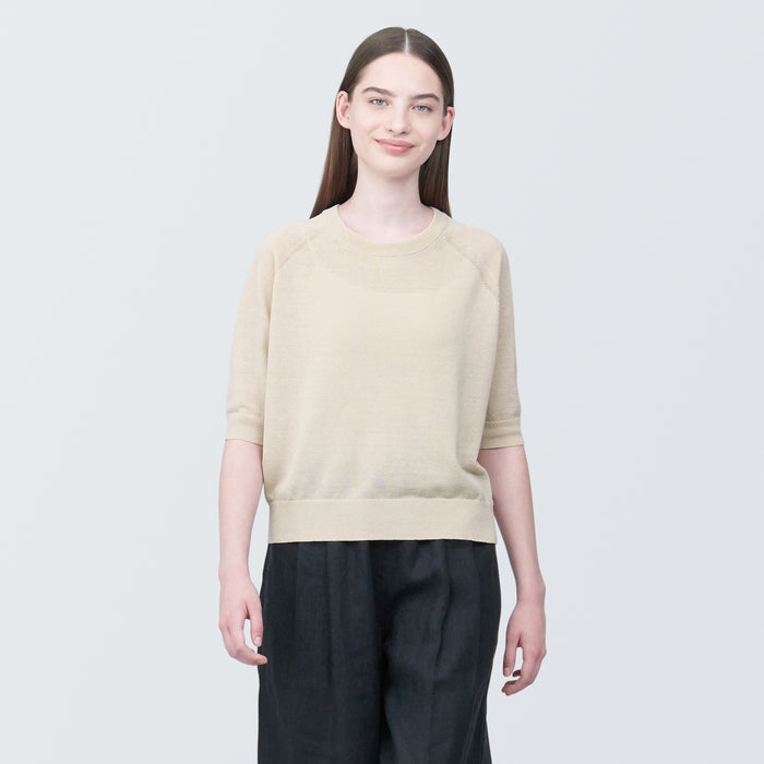Women's Hemp Blend Crew Neck Half Sleeve Sweater