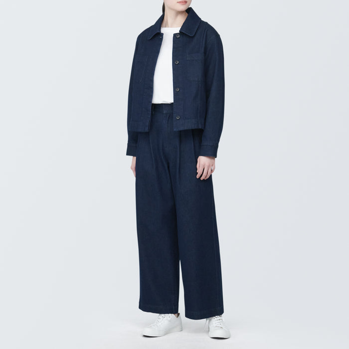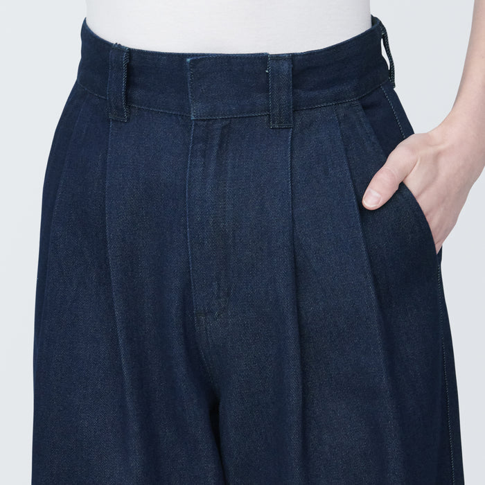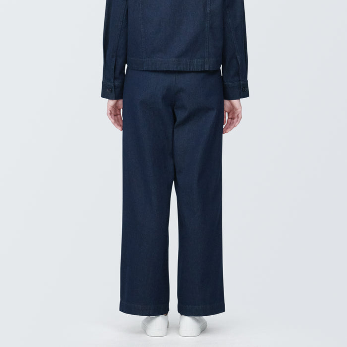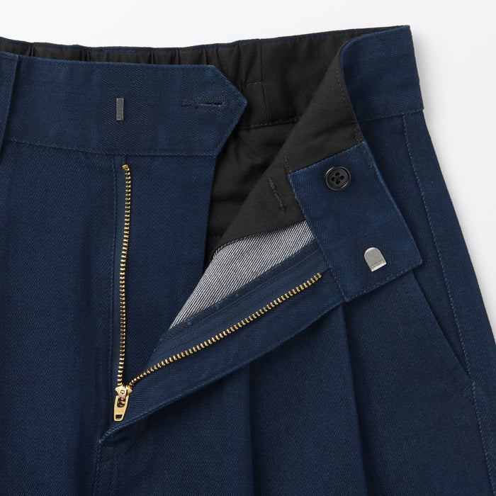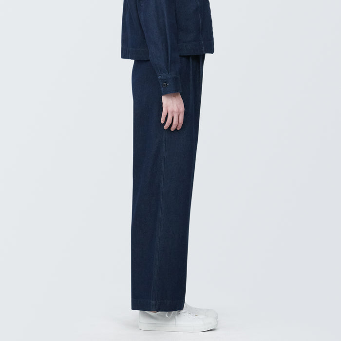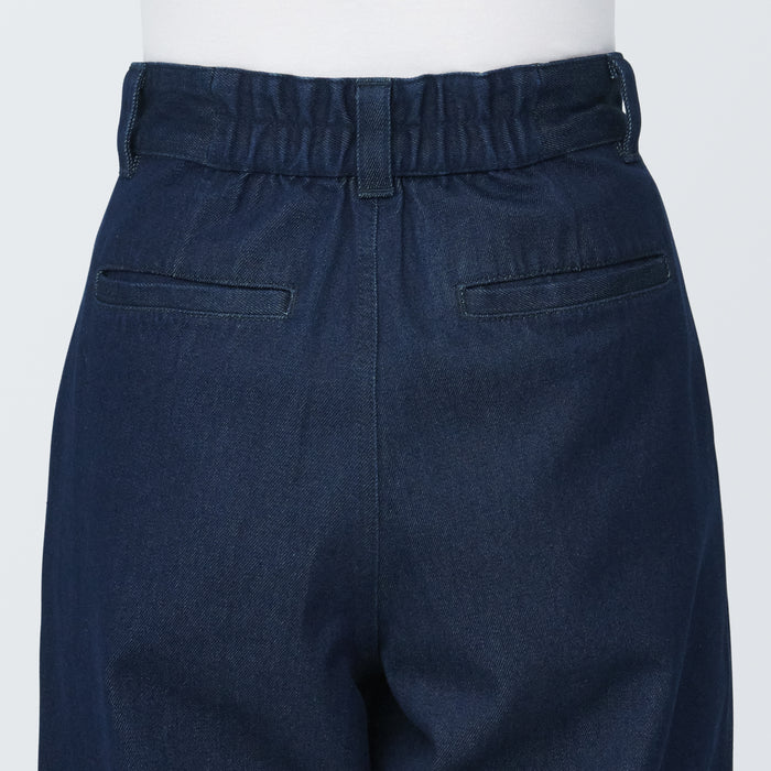 Relaxed-fit tucked, elastic waist pants made with a blend of organic cotton and kapok, an environmentally friendly plant grown without pesticides. By using a fabric that mixes kapok with cotton, it is softer and lighter than conventional 100% cotton.