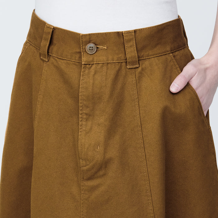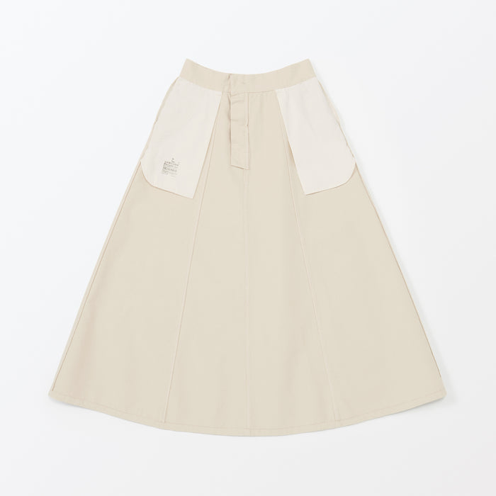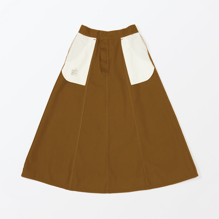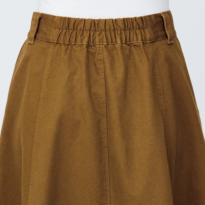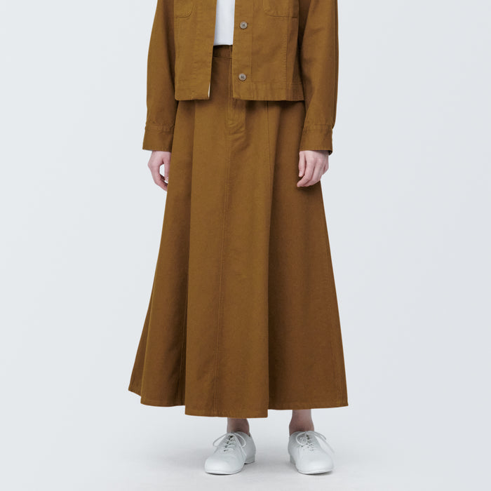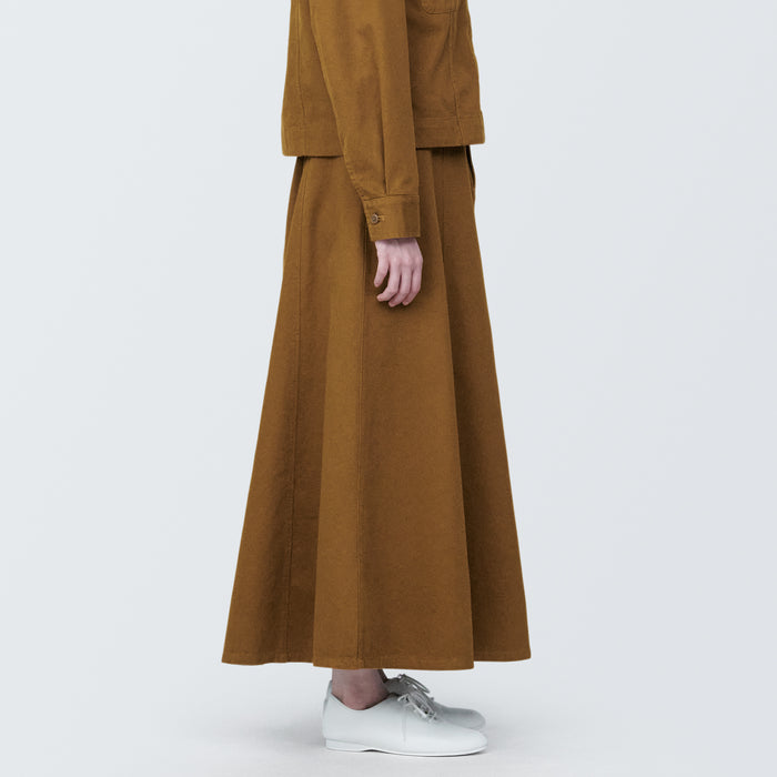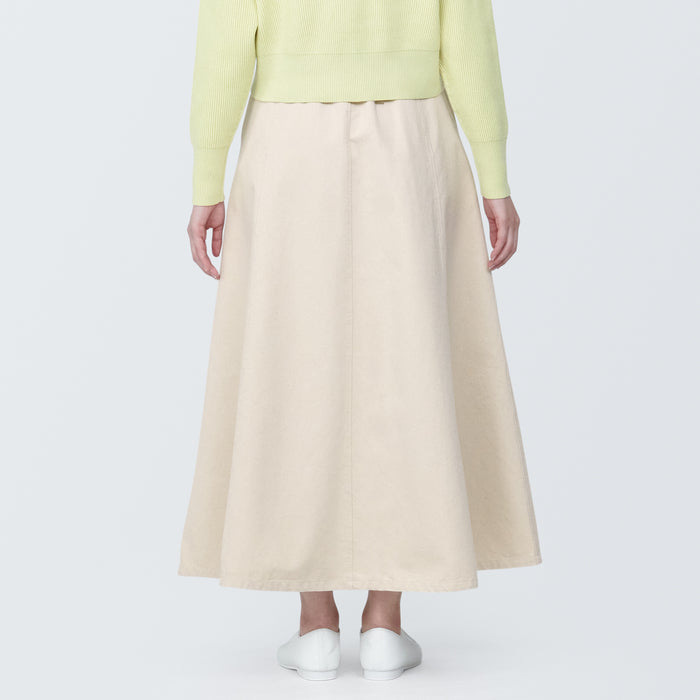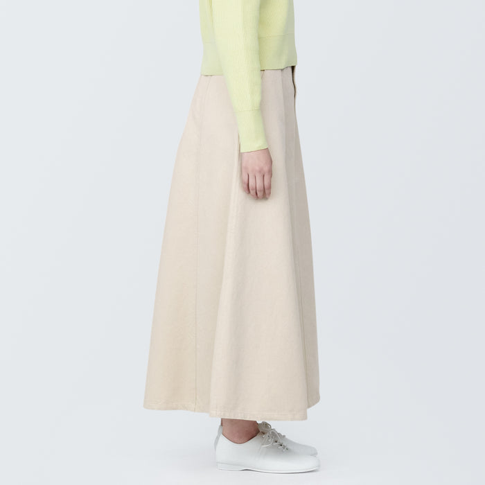 A long flared skirt made using a blend of organic cotton and kapok, an environmentally friendly plant grown without pesticides. By using a fabric that mixes kapok with cotton, it is softer and lighter than conventional 100% cotton.